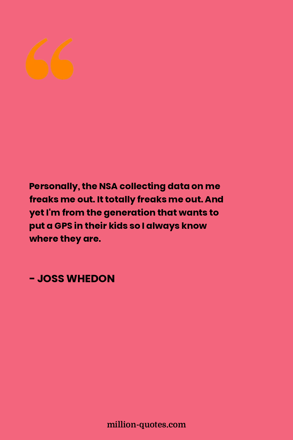 Personally, the NSA collecting data on me freaks me out. It totally freaks me out. And yet I'm from the generation that wants to put a GPS in their kids so I always know where they are.