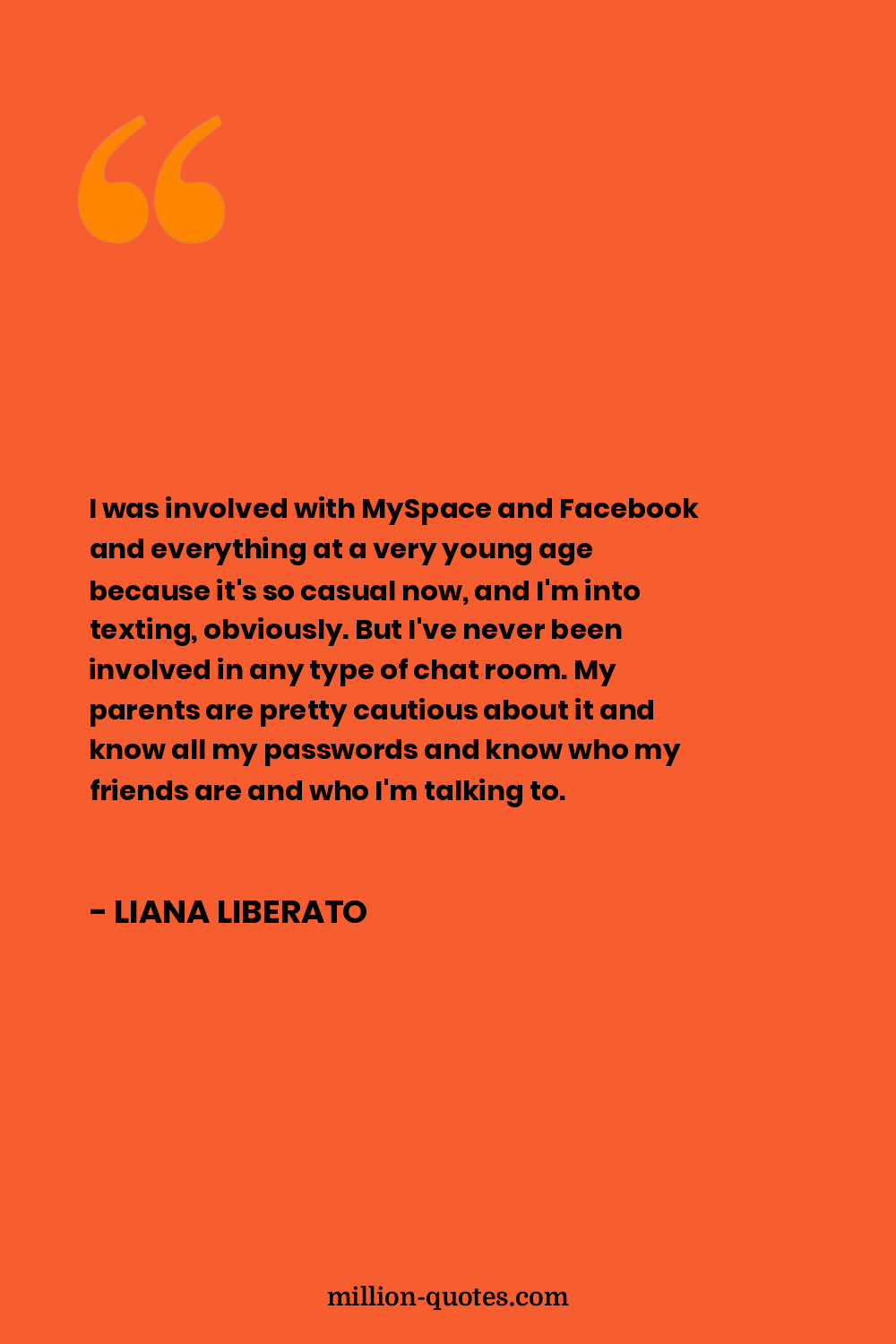 I was involved with MySpace and Facebook and everything at a very young age because it's so casual now, and I'm into texting, obviously. But I've never been involved in any type of chat room. My parents are pretty cautious about it and know all my passwords and know who my friends are and who I'm talking to.