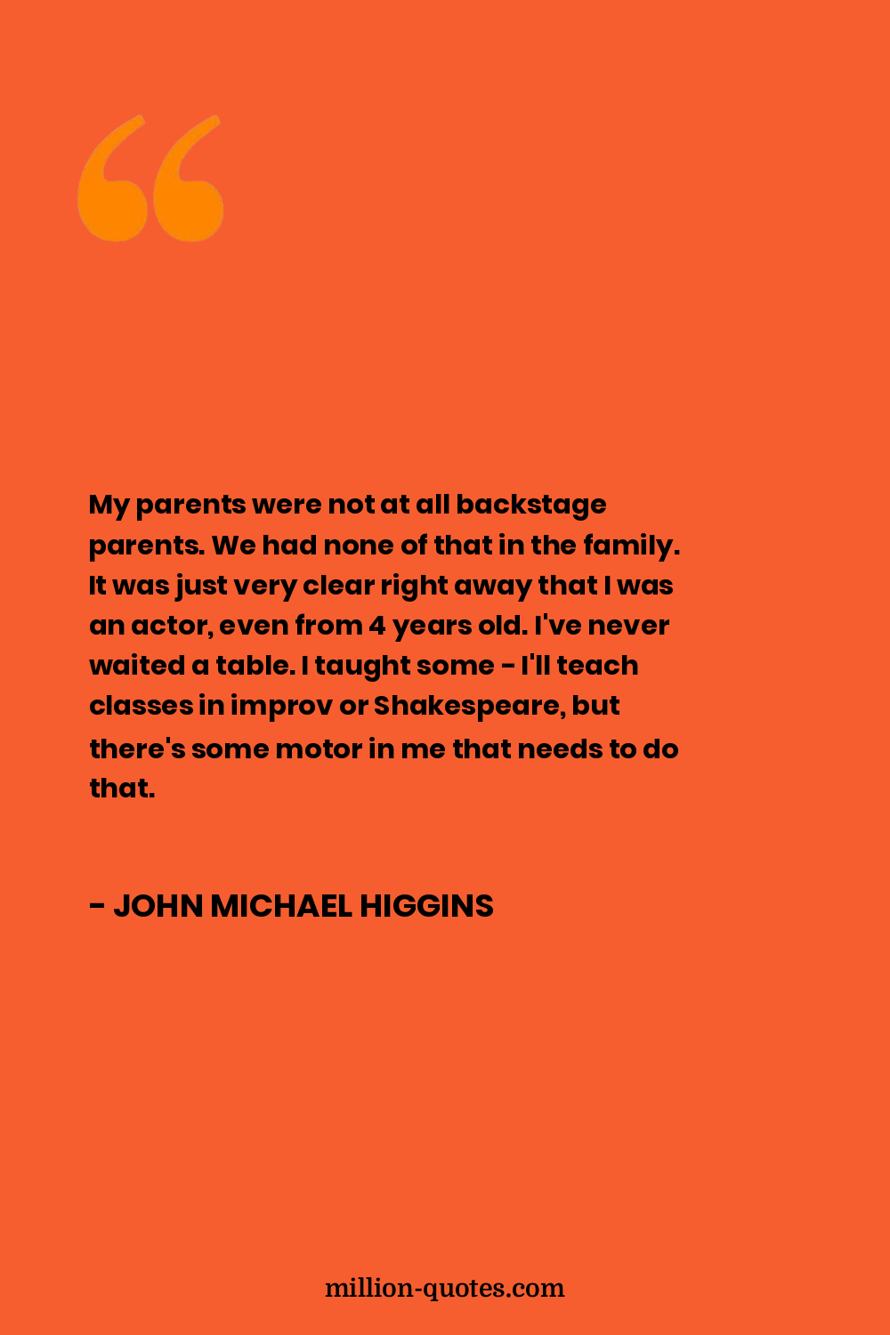 My parents were not at all backstage parents. We had none of that in the family. It was just very clear right away that I was an actor, even from 4 years old. I've never waited a table. I taught some - I'll teach classes in improv or Shakespeare, but there's some motor in me that needs to do that.