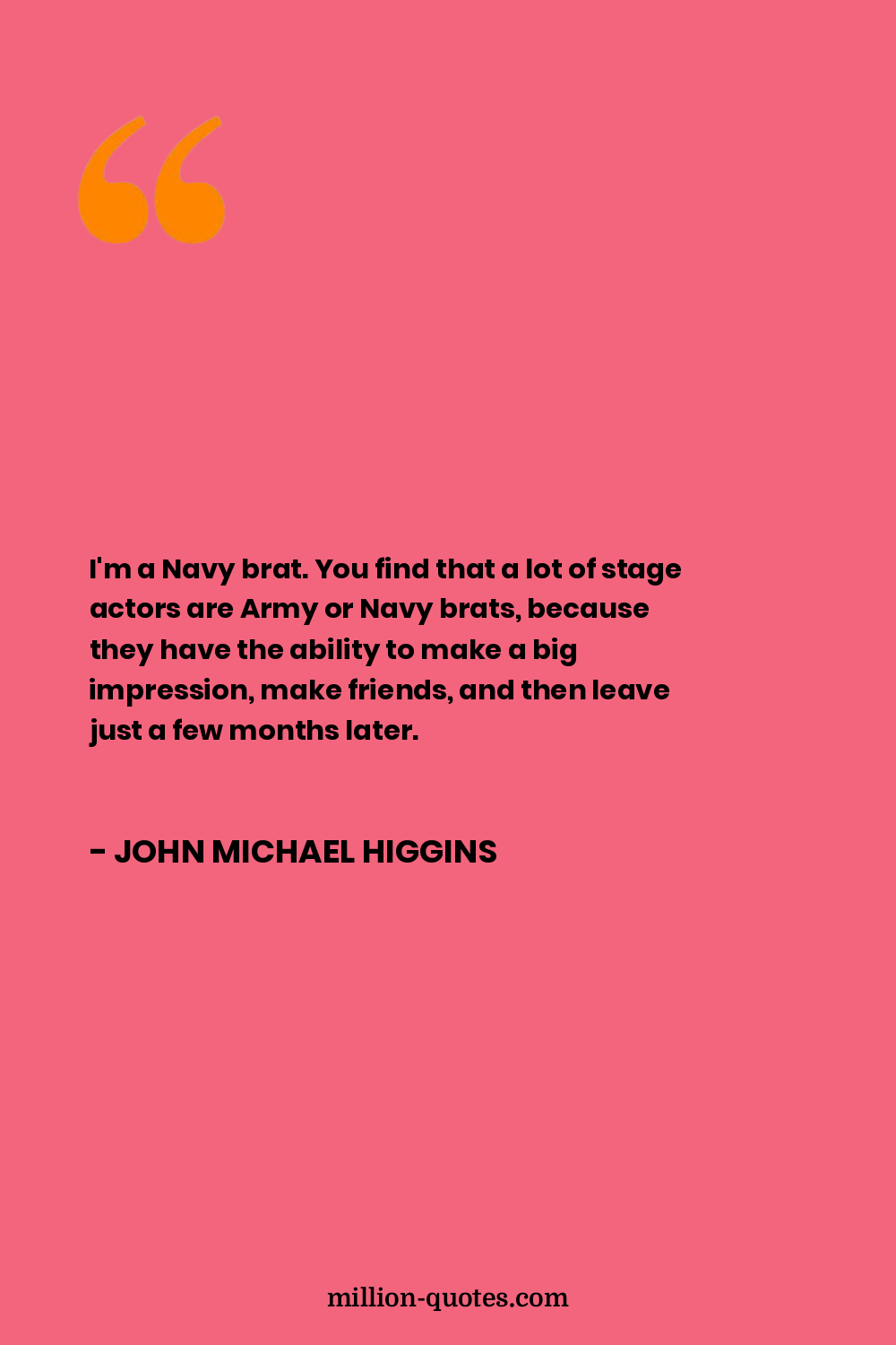 I'm a Navy brat. You find that a lot of stage actors are Army or Navy brats, because they have the ability to make a big impression, make friends, and then leave just a few months later.