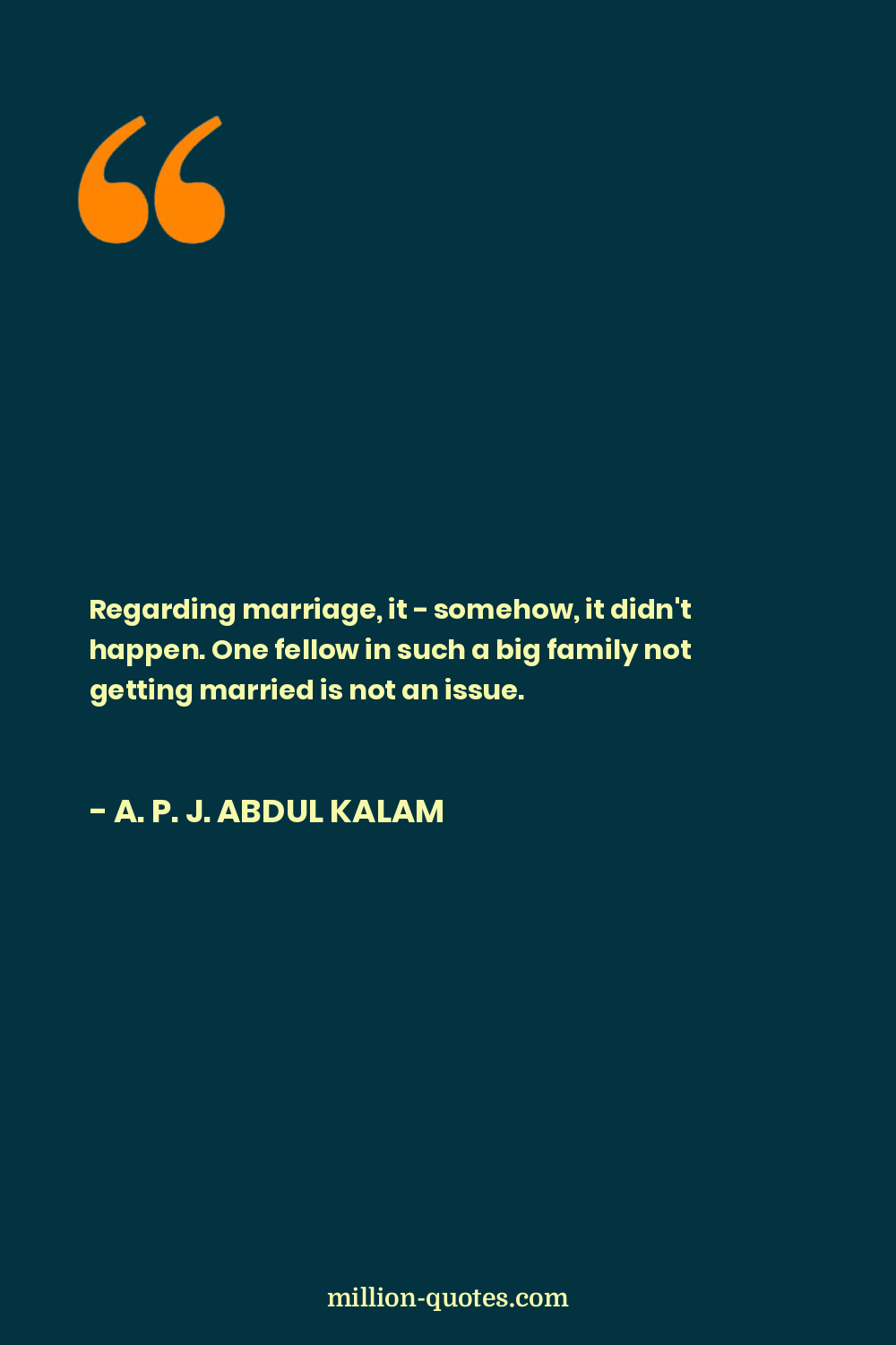 Regarding marriage, it - somehow, it didn't happen. One fellow in such a big family not getting married is not an issue.