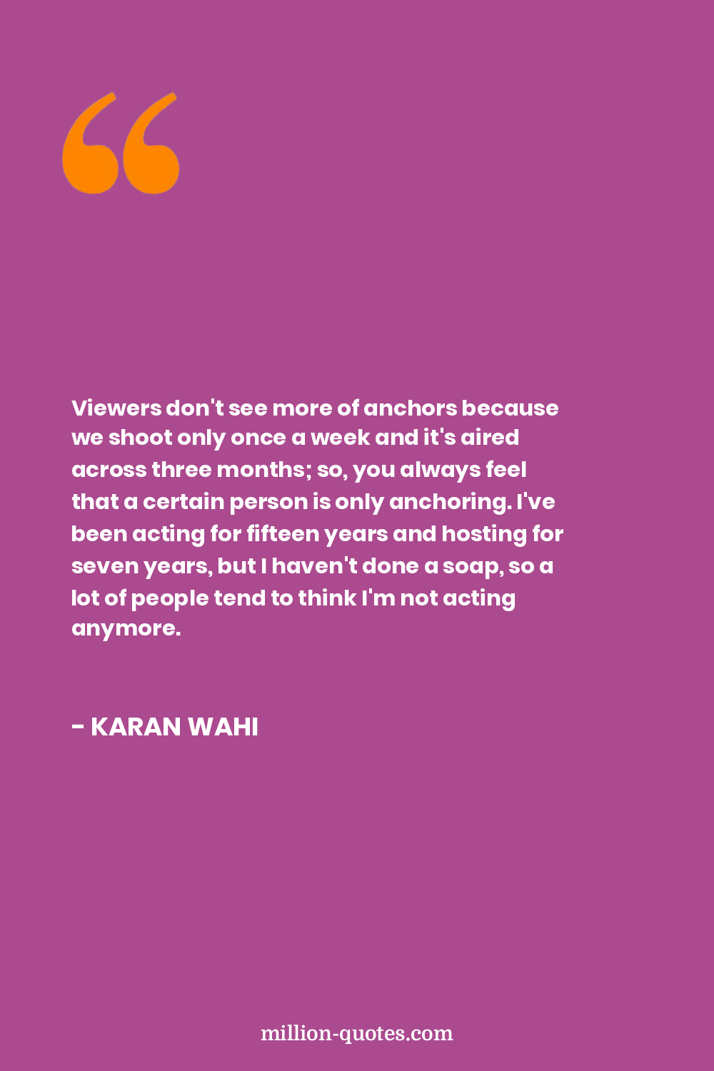 Viewers don't see more of anchors because we shoot only once a week and it's aired across three months; so, you always feel that a certain person is only anchoring. I've been acting for fifteen years and hosting for seven years, but I haven't done a soap, so a lot of people tend to think I'm not acting anymore.