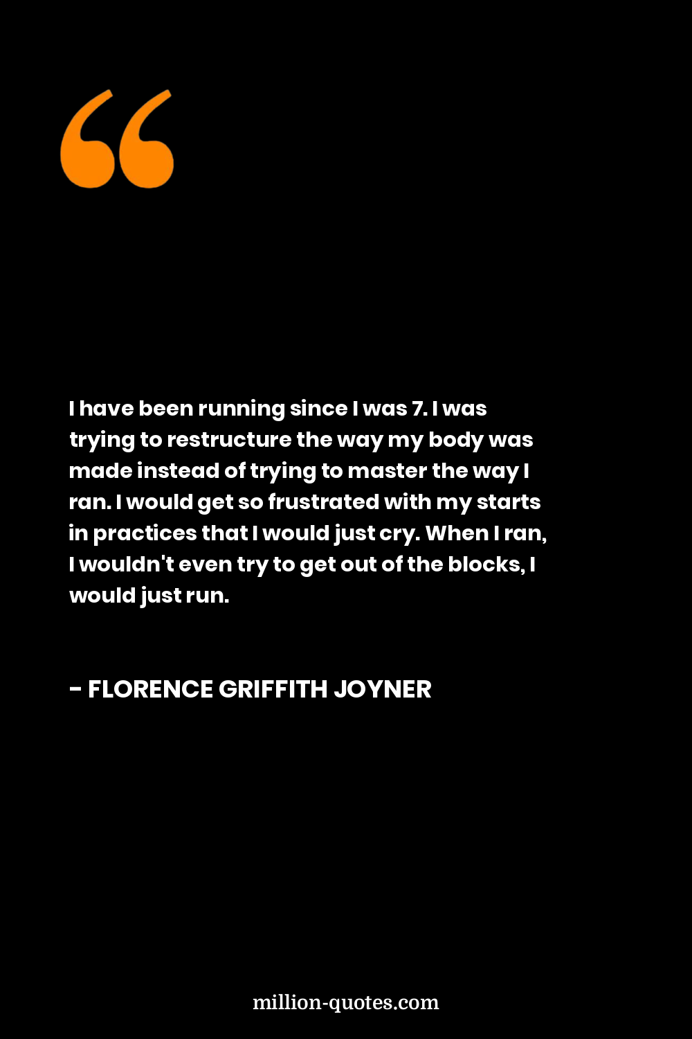 I have been running since I was 7. I was trying to restructure the way my body was made instead of trying to master the way I ran. I would get so frustrated with my starts in practices that I would just cry. When I ran, I wouldn't even try to get out of the blocks, I would just run.