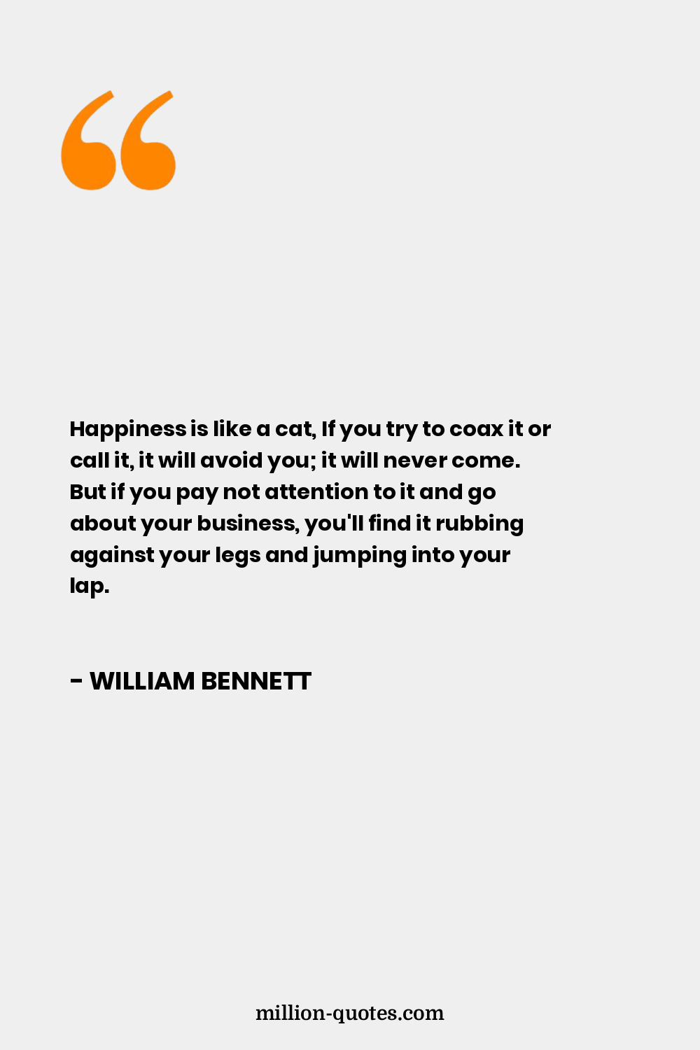 Happiness is like a cat, If you try to coax it or call it, it will avoid you; it will never come. But if you pay not attention to it and go about your business, you'll find it rubbing against your legs and jumping into your lap.