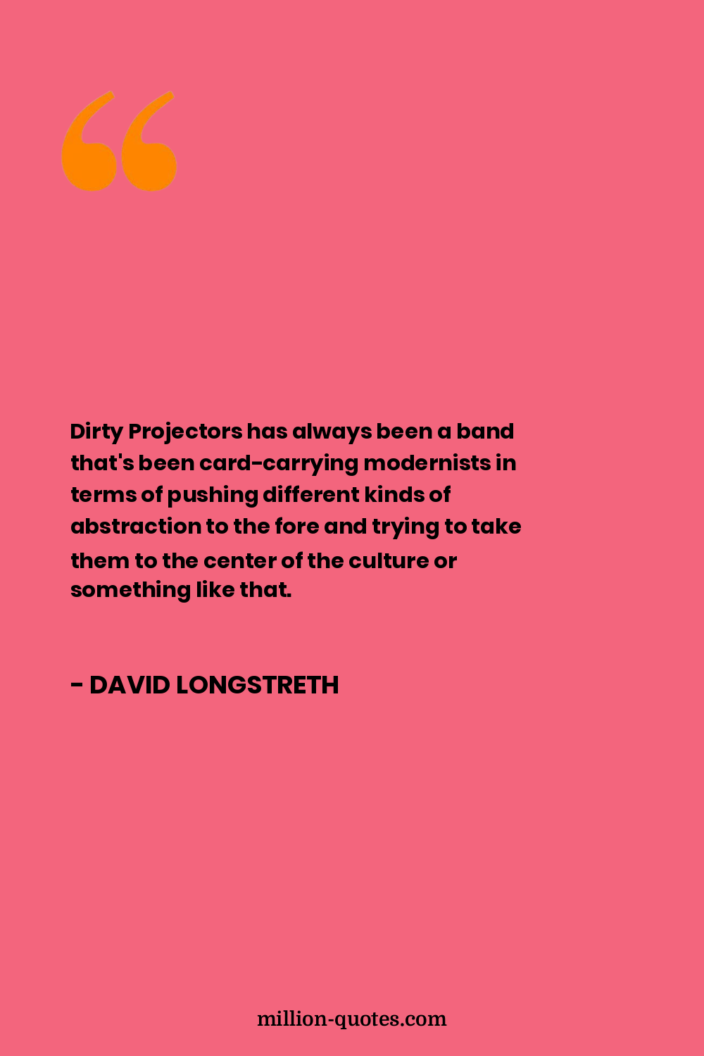 Dirty Projectors has always been a band that's been card-carrying modernists in terms of pushing different kinds of abstraction to the fore and trying to take them to the center of the culture or something like that.