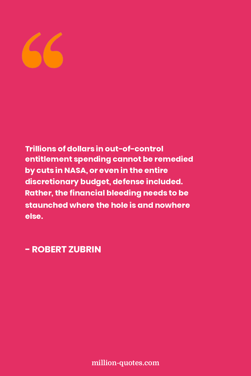 Trillions of dollars in out-of-control entitlement spending cannot be remedied by cuts in NASA, or even in the entire discretionary budget, defense included. Rather, the financial bleeding needs to be staunched where the hole is and nowhere else.