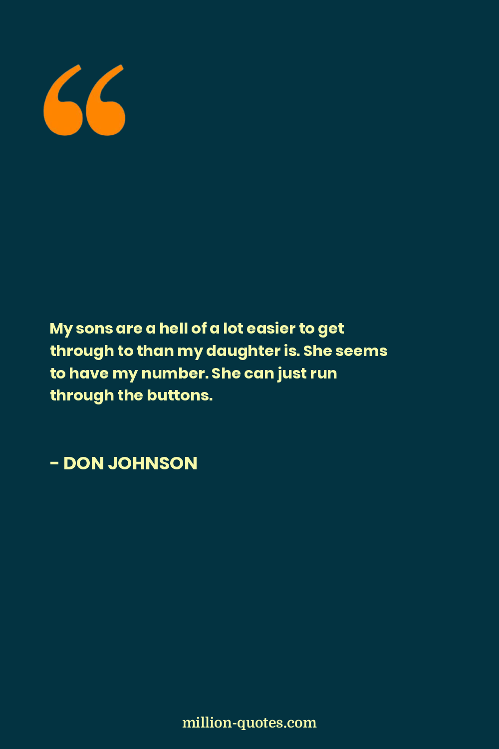 My sons are a hell of a lot easier to get through to than my daughter is. She seems to have my number. She can just run through the buttons.