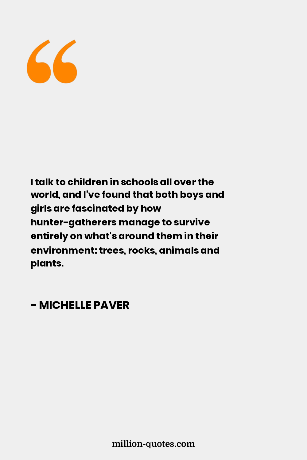 I talk to children in schools all over the world, and I've found that both boys and girls are fascinated by how hunter-gatherers manage to survive entirely on what's around them in their environment: trees, rocks, animals and plants.