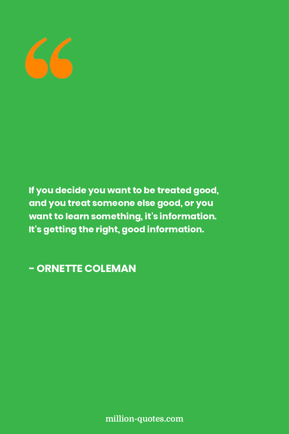 If you decide you want to be treated good, and you treat someone else good, or you want to learn something, it's information. It's getting the right, good information.