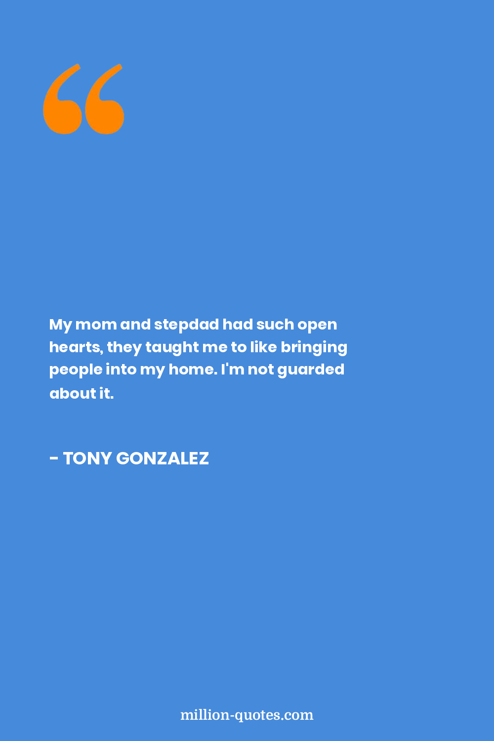 My mom and stepdad had such open hearts, they taught me to like bringing people into my home. I'm not guarded about it.