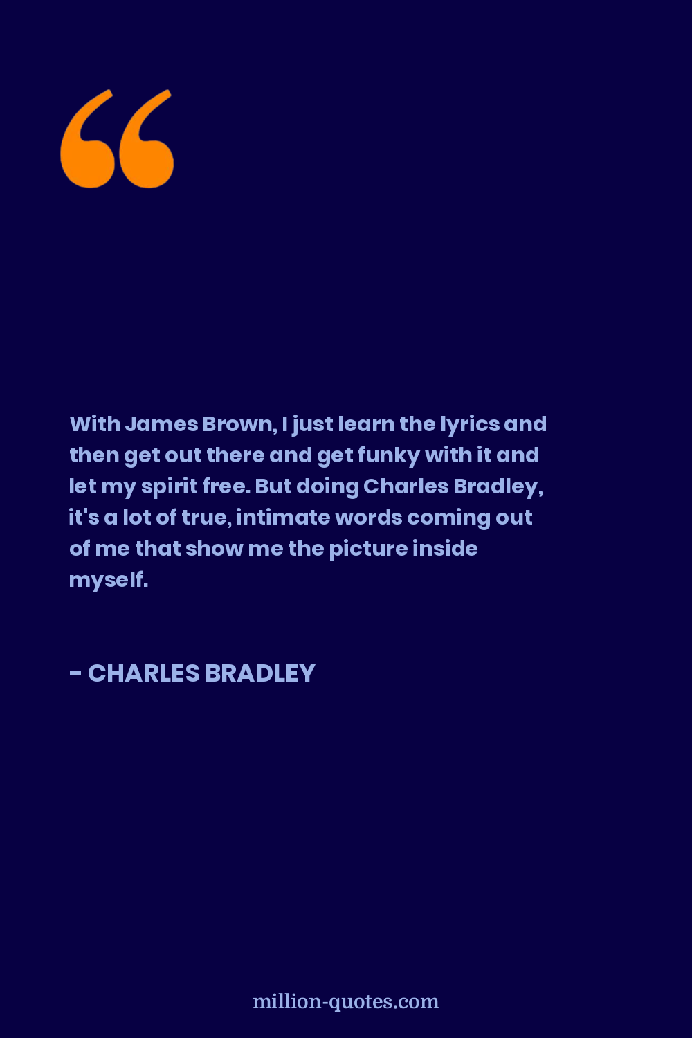 With James Brown, I just learn the lyrics and then get out there and get funky with it and let my spirit free. But doing Charles Bradley, it's a lot of true, intimate words coming out of me that show me the picture inside myself.