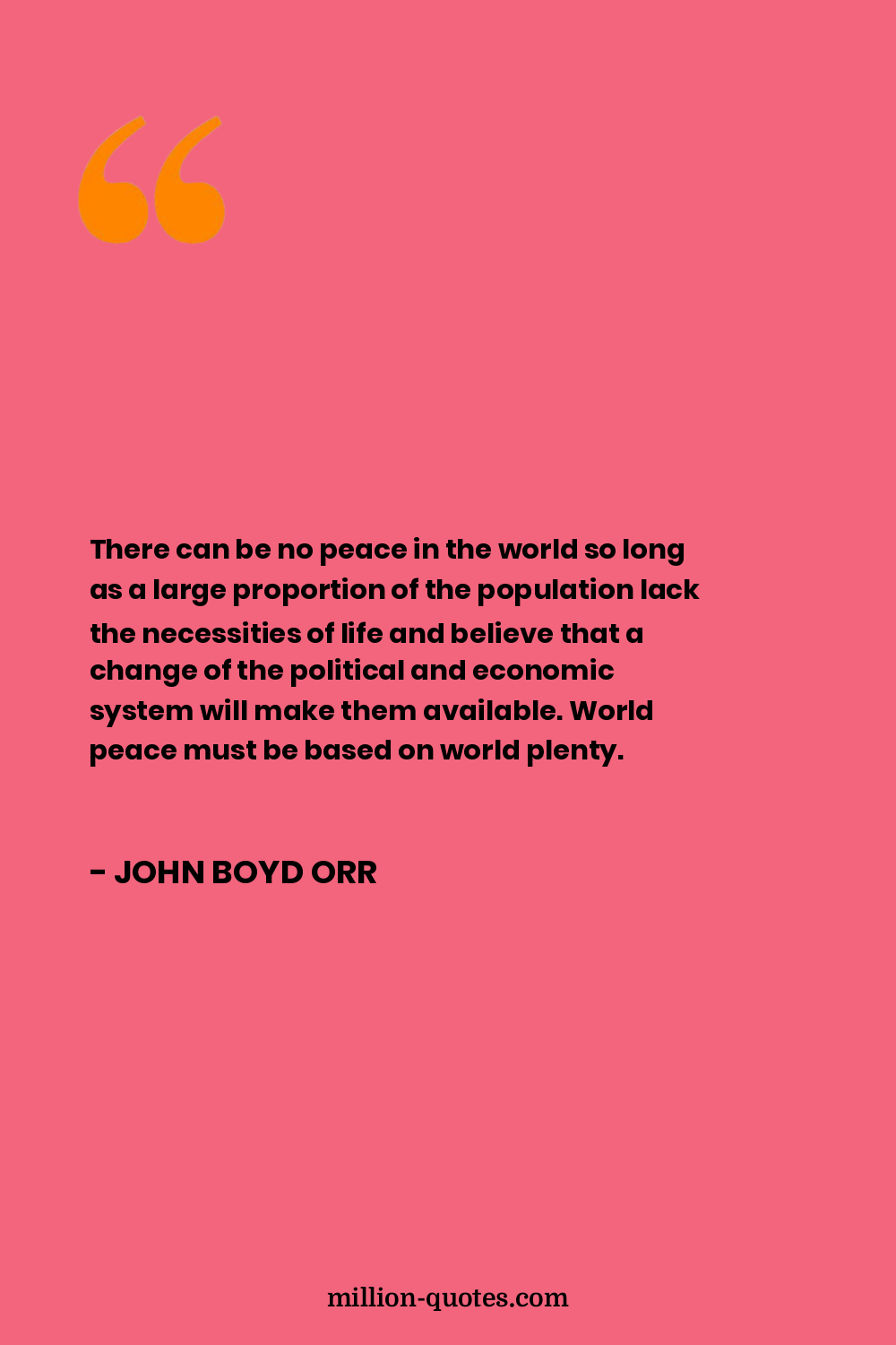 There can be no peace in the world so long as a large proportion of the population lack the necessities of life and believe that a change of the political and economic system will make them available. World peace must be based on world plenty.