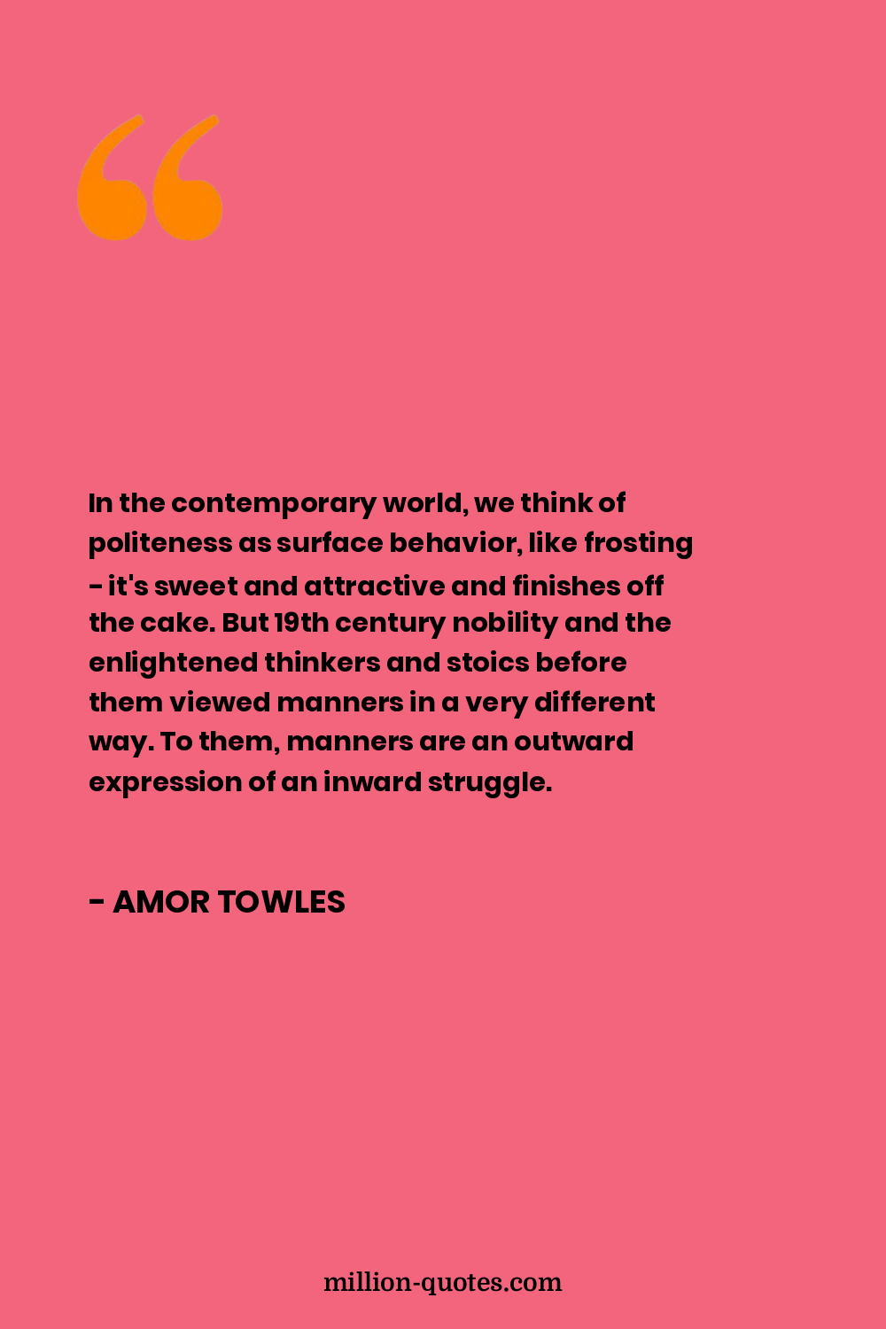 In the contemporary world, we think of politeness as surface behavior, like frosting - it's sweet and attractive and finishes off the cake. But 19th century nobility and the enlightened thinkers and stoics before them viewed manners in a very different way. To them, manners are an outward expression of an inward struggle.