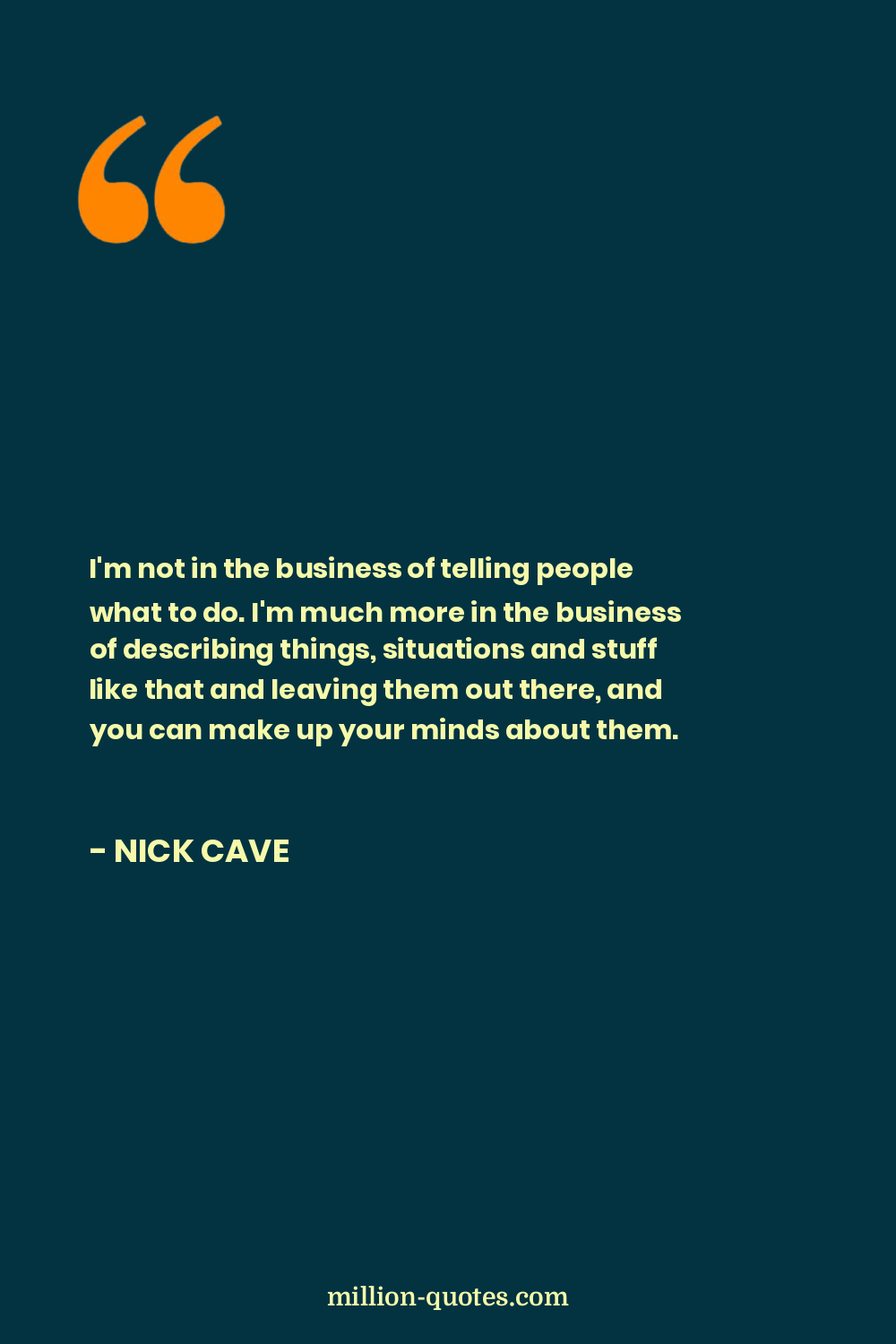 I'm not in the business of telling people what to do. I'm much more in the business of describing things, situations and stuff like that and leaving them out there, and you can make up your minds about them.