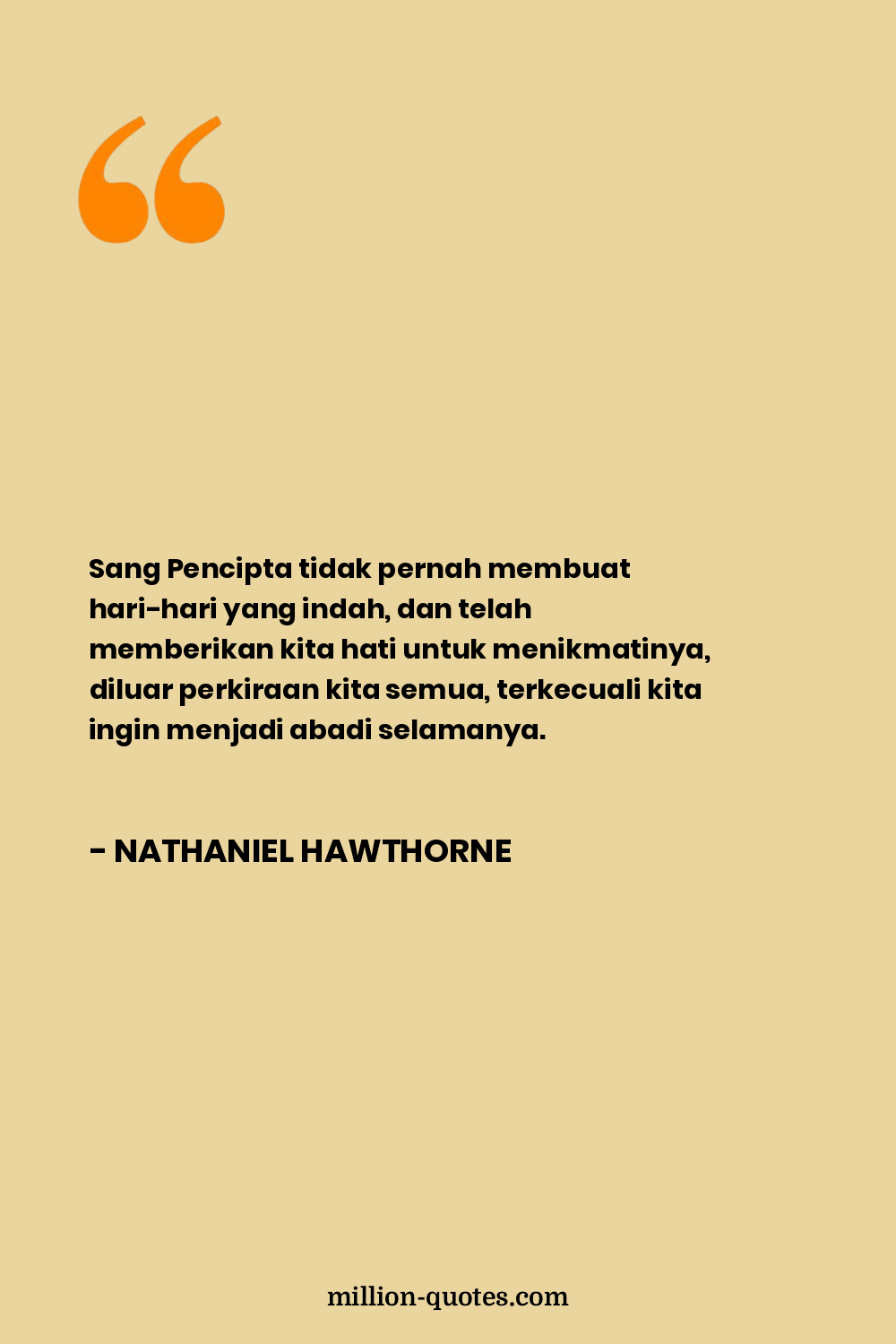 Sang Pencipta tidak pernah membuat hari-hari yang indah, dan telah memberikan kita hati untuk menikmatinya, diluar perkiraan kita semua, terkecuali kita ingin menjadi abadi selamanya.