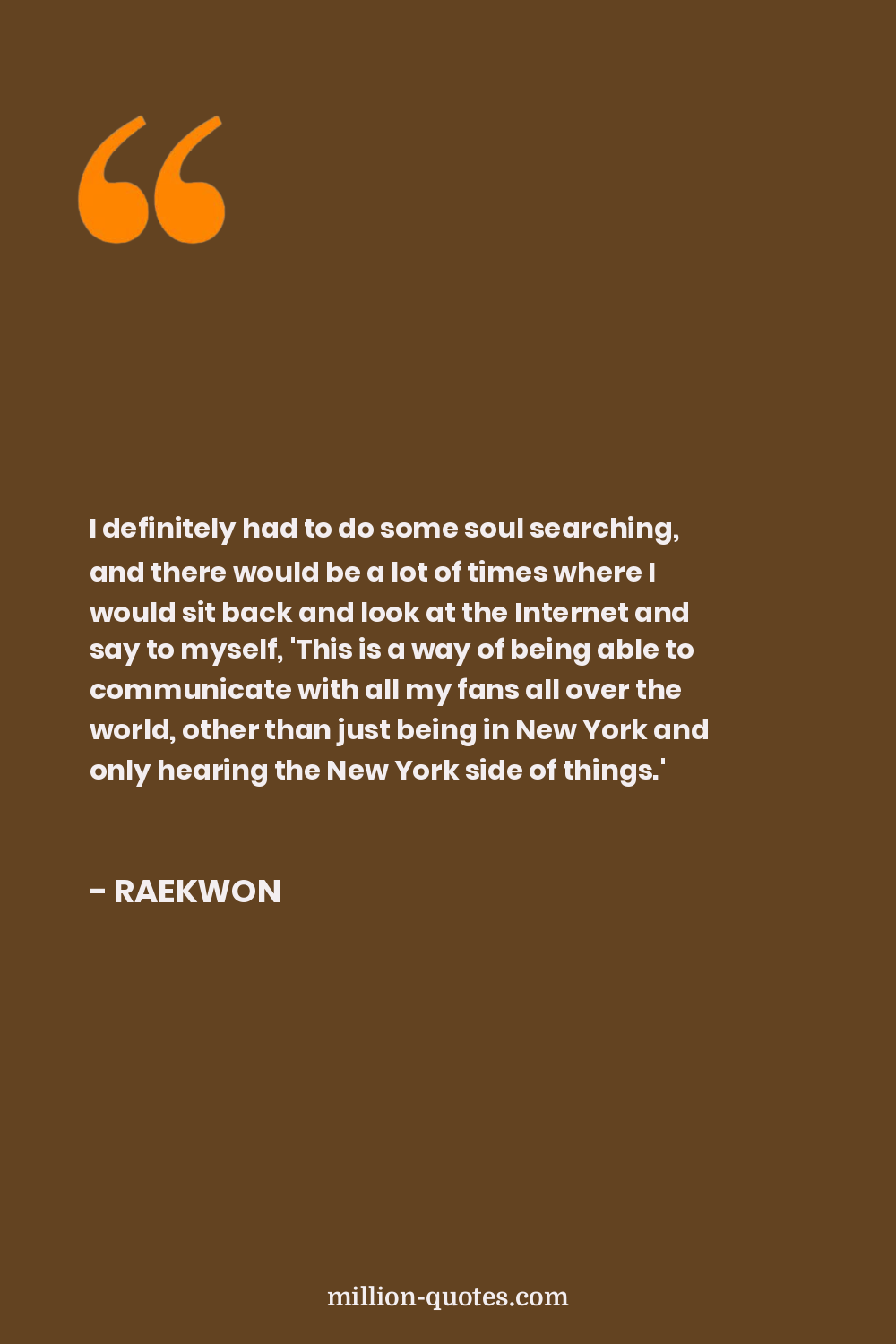 I definitely had to do some soul searching, and there would be a lot of times where I would sit back and look at the Internet and say to myself, 'This is a way of being able to communicate with all my fans all over the world, other than just being in New York and only hearing the New York side of things.'
