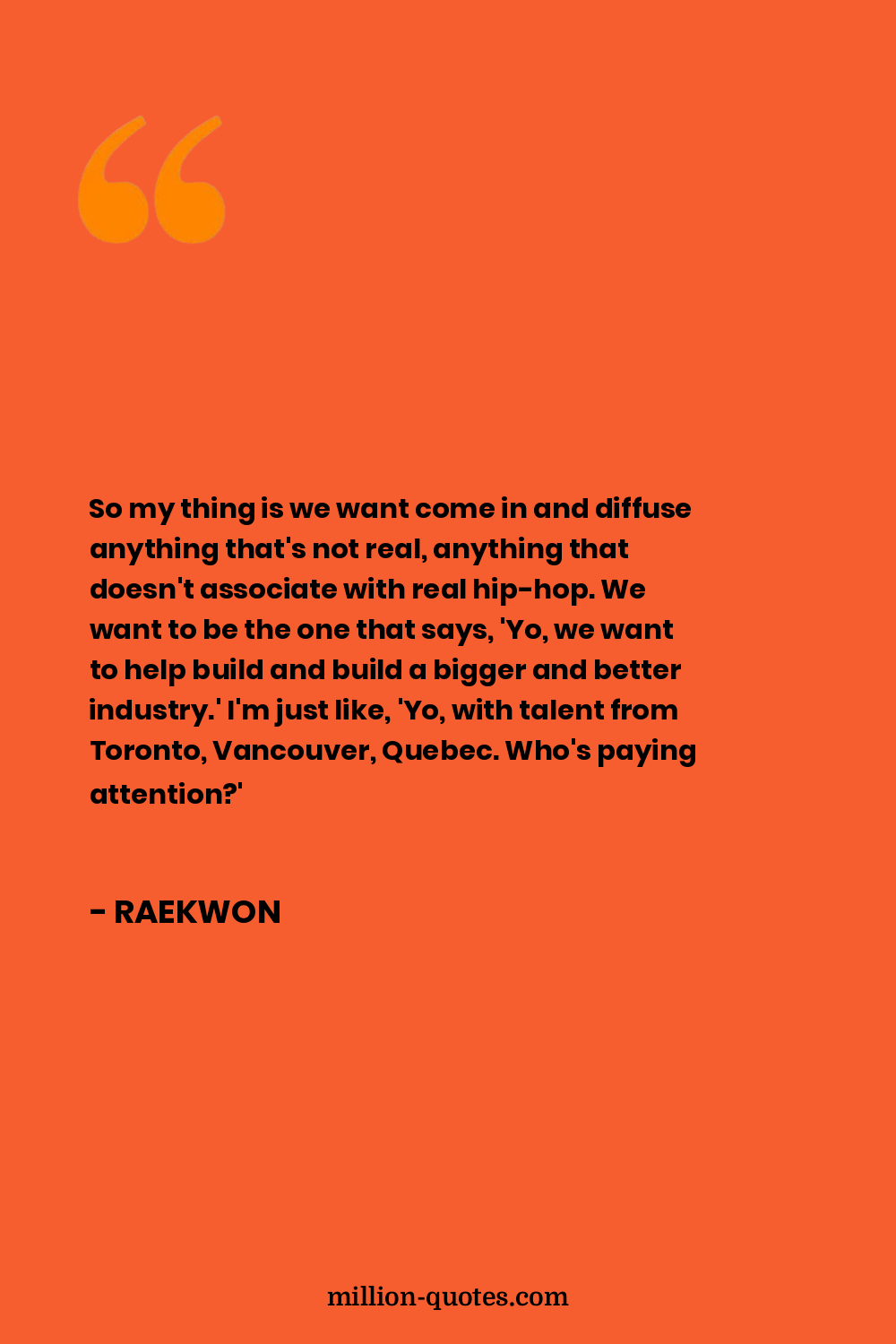 So my thing is we want come in and diffuse anything that's not real, anything that doesn't associate with real hip-hop. We want to be the one that says, 'Yo, we want to help build and build a bigger and better industry.' I'm just like, 'Yo, with talent from Toronto, Vancouver, Quebec. Who's paying attention?'