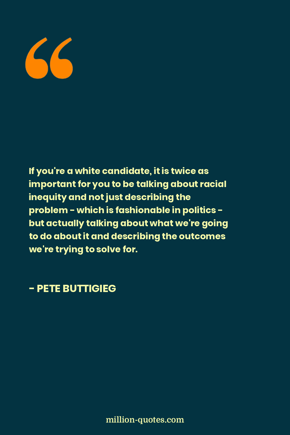 If you're a white candidate, it is twice as important for you to be talking about racial inequity and not just describing the problem - which is fashionable in politics - but actually talking about what we're going to do about it and describing the outcomes we're trying to solve for.