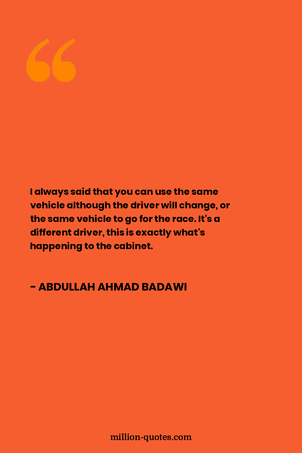 I always said that you can use the same vehicle although the driver will change, or the same vehicle to go for the race. It's a different driver, this is exactly what's happening to the cabinet.