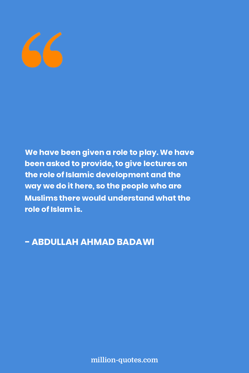 We have been given a role to play. We have been asked to provide, to give lectures on the role of Islamic development and the way we do it here, so the people who are Muslims there would understand what the role of Islam is.