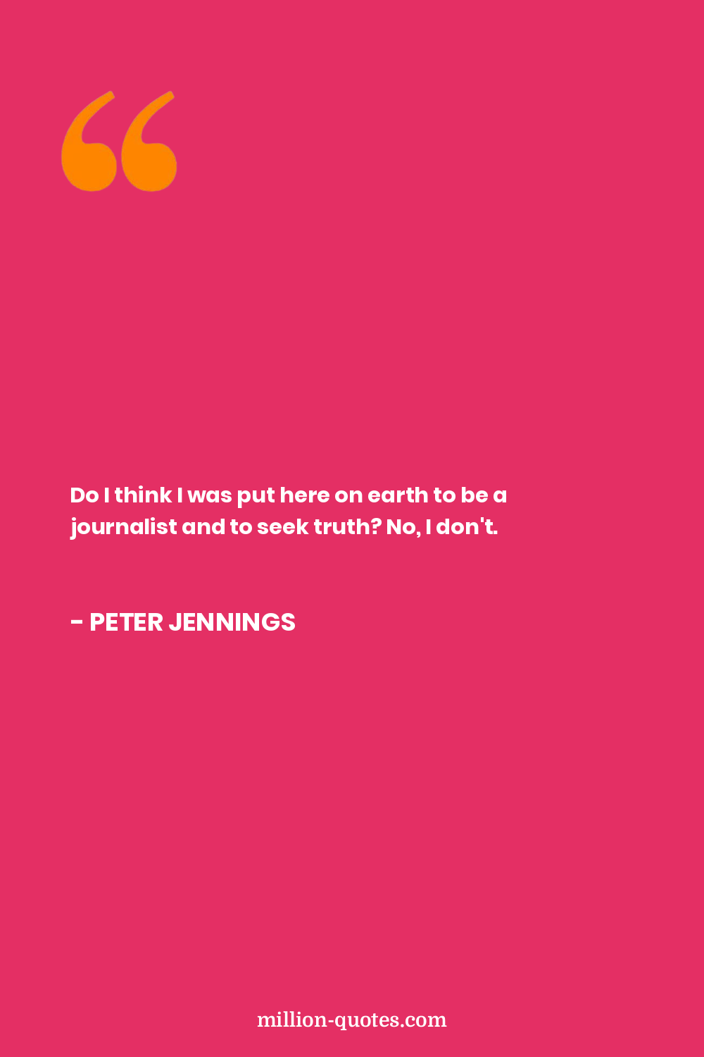 Do I think I was put here on earth to be a journalist and to seek truth? No, I don't.