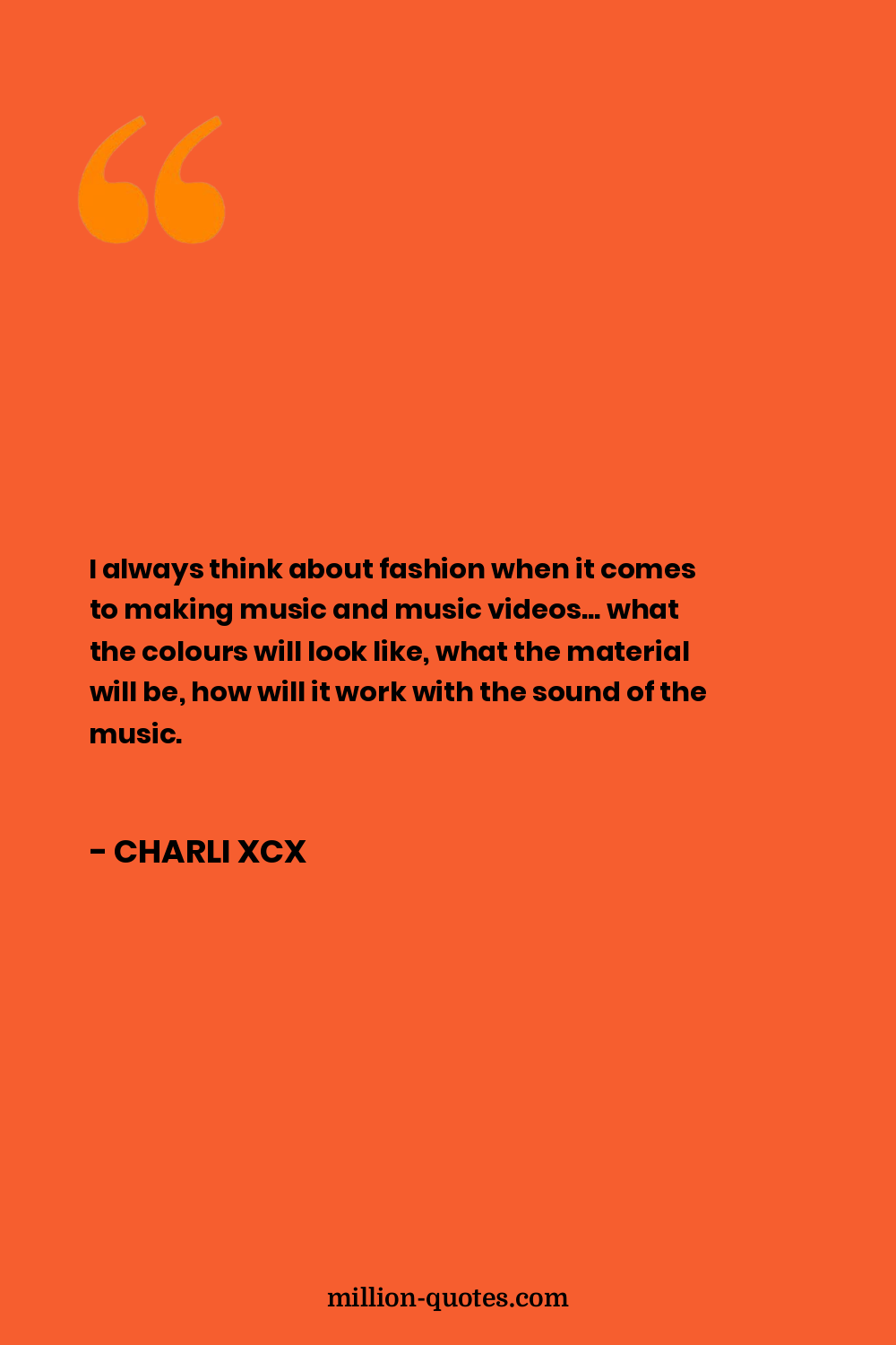 I always think about fashion when it comes to making music and music videos... what the colours will look like, what the material will be, how will it work with the sound of the music.