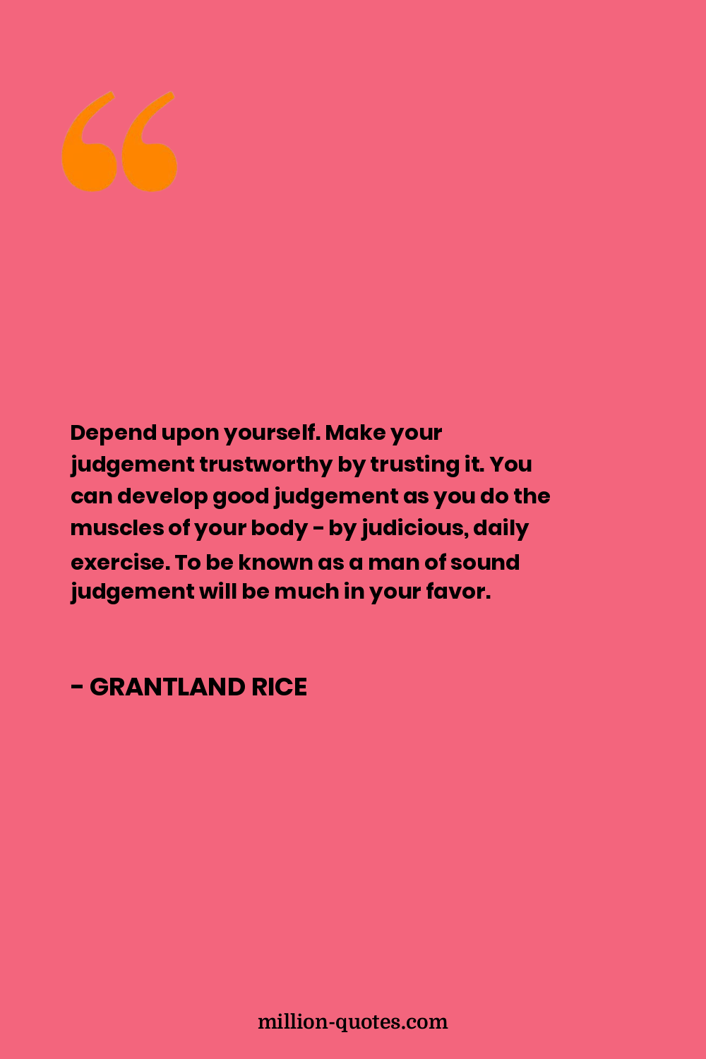 Depend upon yourself. Make your judgement trustworthy by trusting it. You can develop good judgement as you do the muscles of your body - by judicious, daily exercise. To be known as a man of sound judgement will be much in your favor.
