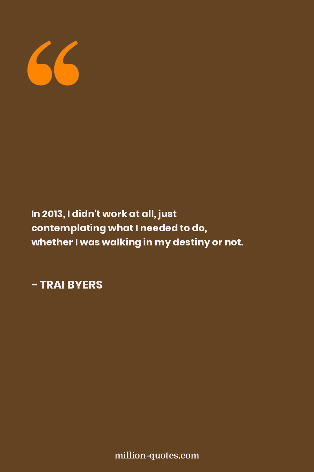 In 2013, I didn't work at all, just contemplating what I needed to do, whether I was walking in my destiny or not.