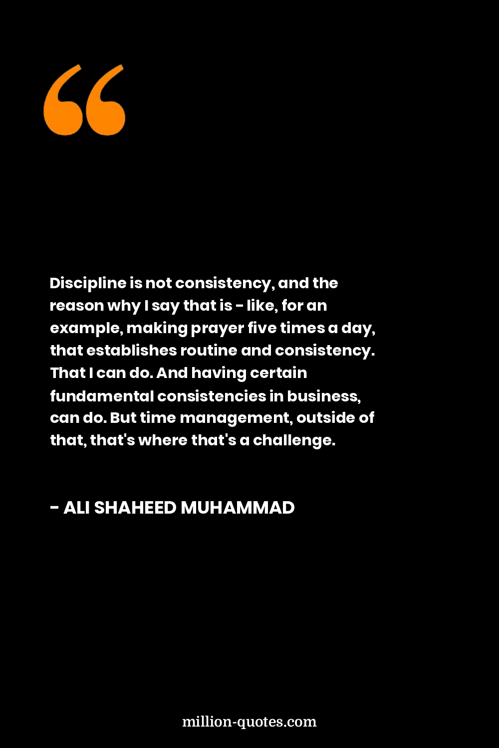 Discipline is not consistency, and the reason why I say that is - like, for an example, making prayer five times a day, that establishes routine and consistency. That I can do. And having certain fundamental consistencies in business, can do. But time management, outside of that, that's where that's a challenge.