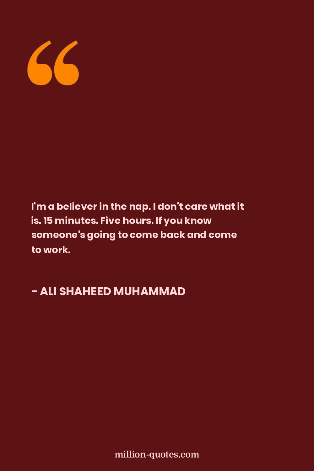 I'm a believer in the nap. I don't care what it is. 15 minutes. Five hours. If you know someone's going to come back and come to work.