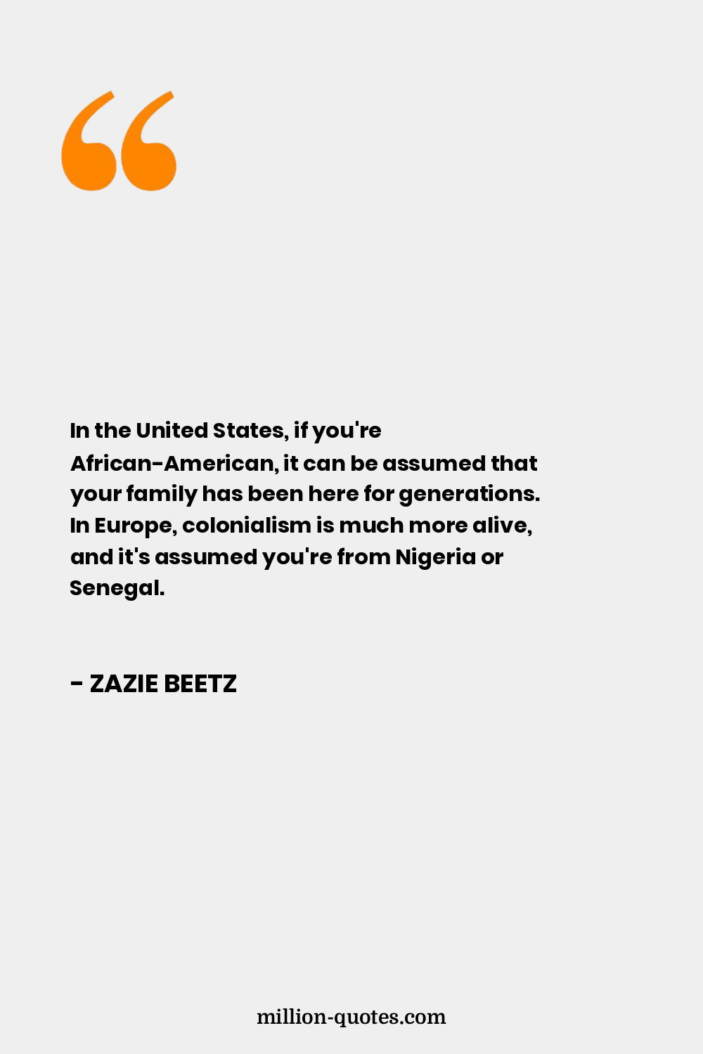 In the United States, if you're African-American, it can be assumed that your family has been here for generations. In Europe, colonialism is much more alive, and it's assumed you're from Nigeria or Senegal.