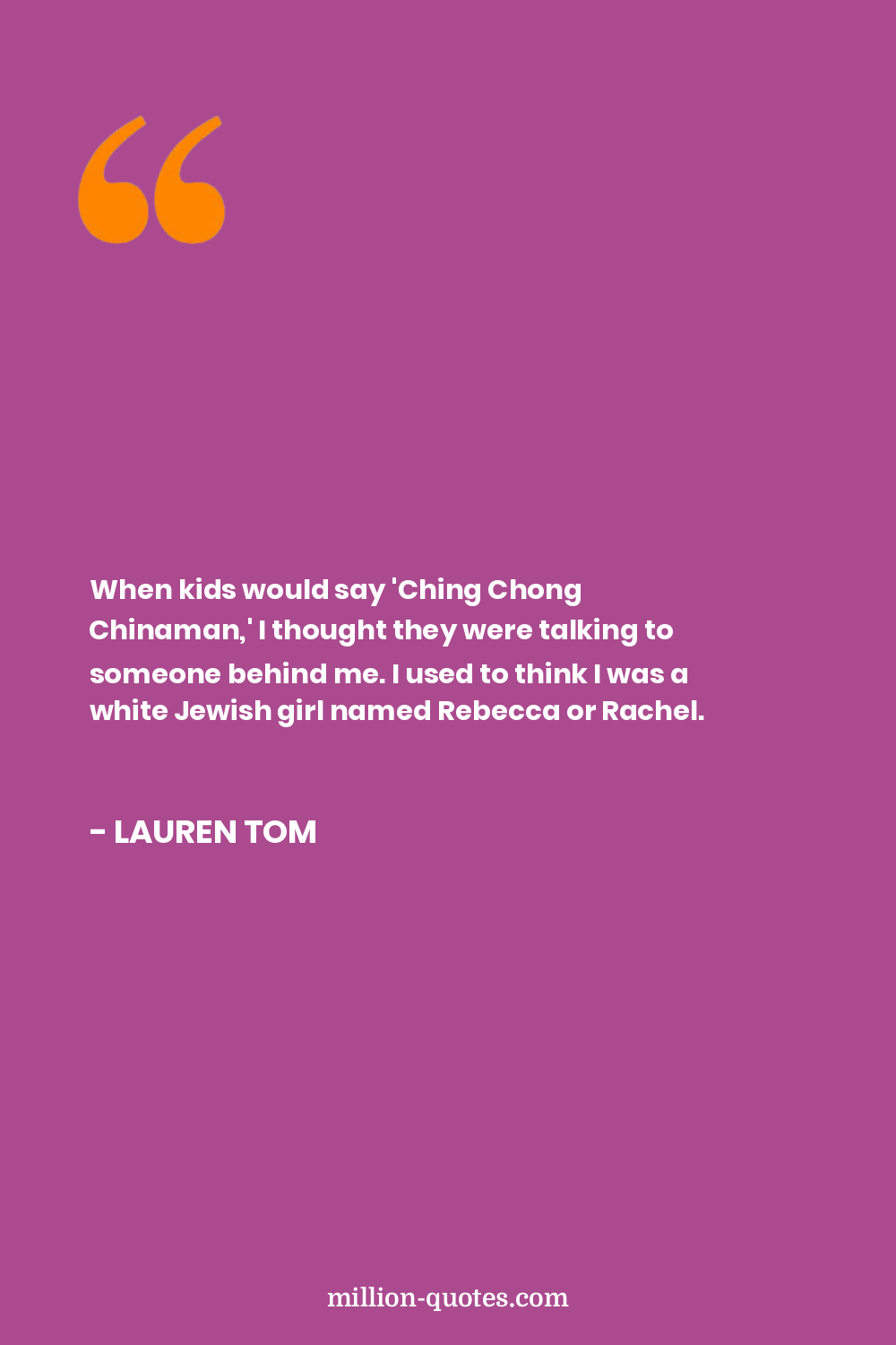 When kids would say 'Ching Chong Chinaman,' I thought they were talking to someone behind me. I used to think I was a white Jewish girl named Rebecca or Rachel.