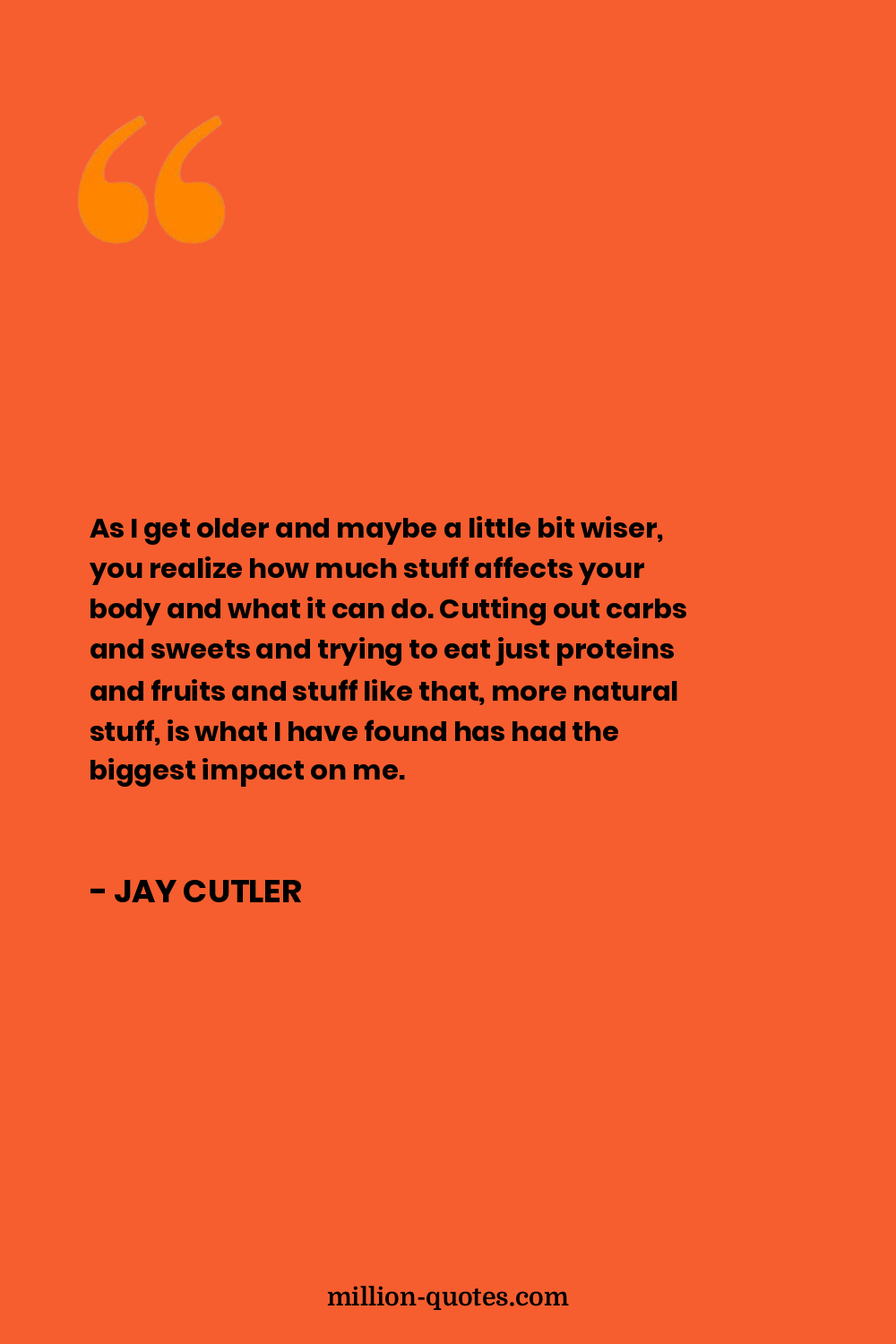 As I get older and maybe a little bit wiser, you realize how much stuff affects your body and what it can do. Cutting out carbs and sweets and trying to eat just proteins and fruits and stuff like that, more natural stuff, is what I have found has had the biggest impact on me.