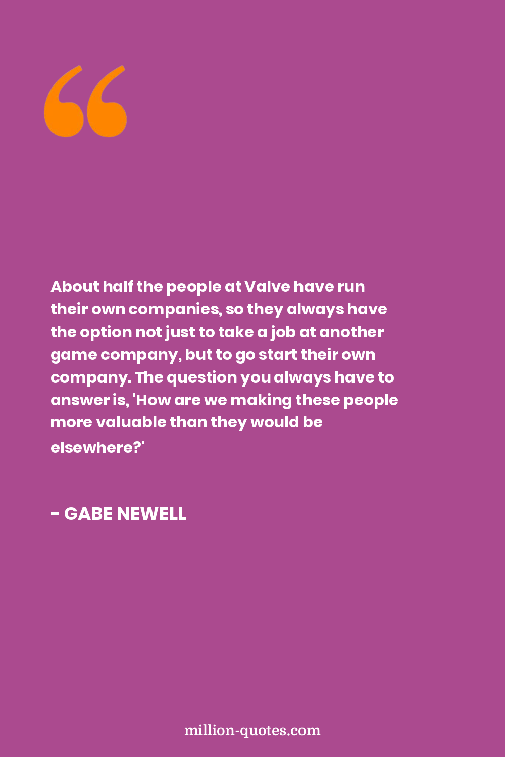 About half the people at Valve have run their own companies, so they always have the option not just to take a job at another game company, but to go start their own company. The question you always have to answer is, 'How are we making these people more valuable than they would be elsewhere?'
