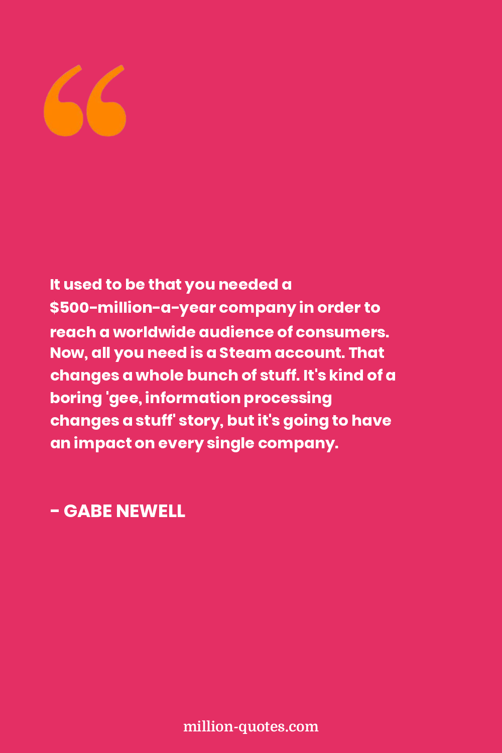It used to be that you needed a $500-million-a-year company in order to reach a worldwide audience of consumers. Now, all you need is a Steam account. That changes a whole bunch of stuff. It's kind of a boring 'gee, information processing changes a stuff' story, but it's going to have an impact on every single company.