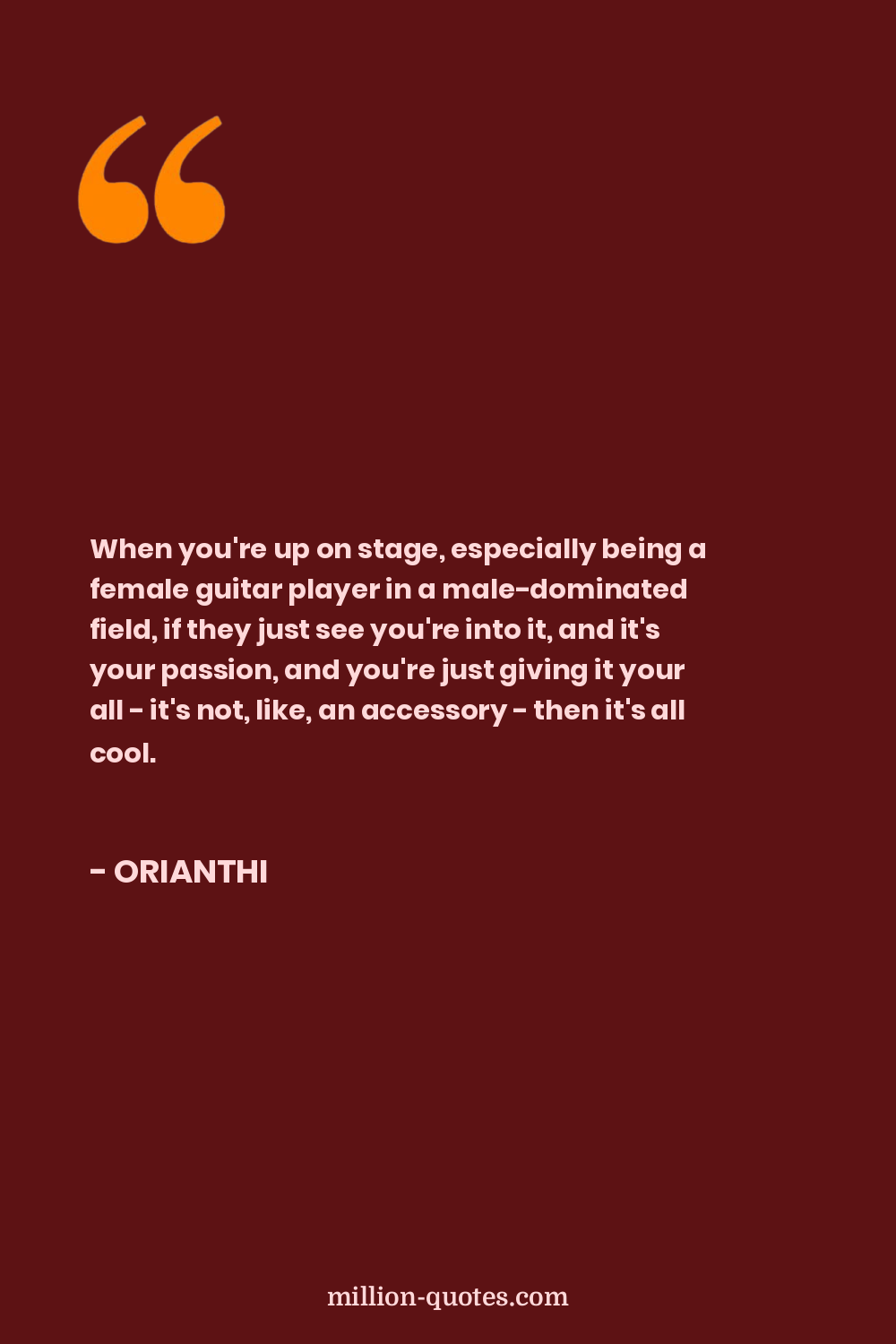 When you're up on stage, especially being a female guitar player in a male-dominated field, if they just see you're into it, and it's your passion, and you're just giving it your all - it's not, like, an accessory - then it's all cool.
