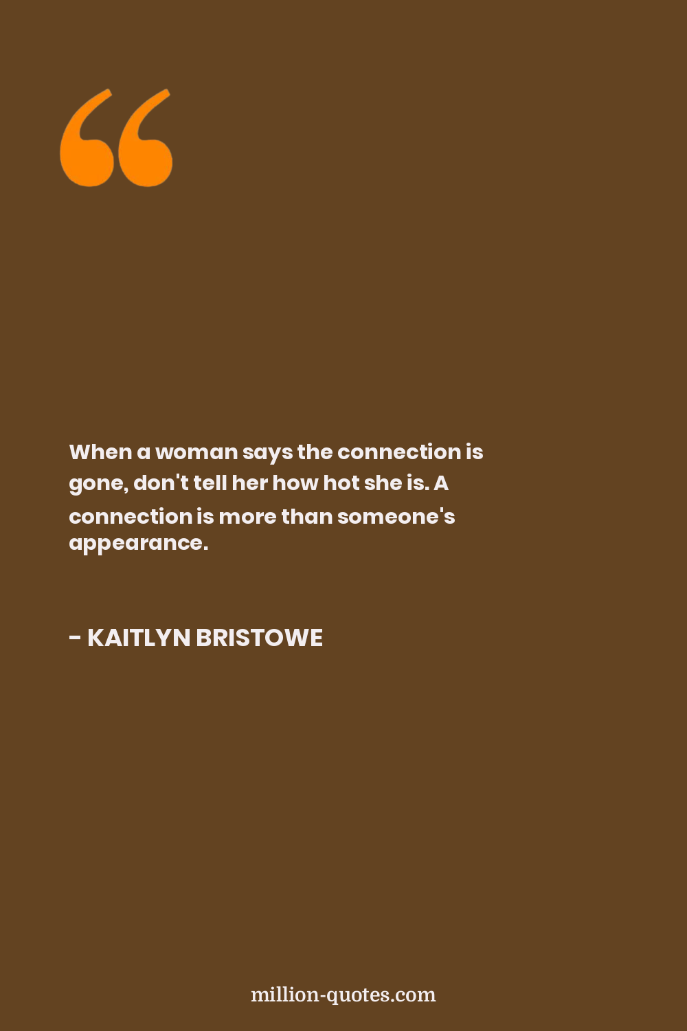 When a woman says the connection is gone, don't tell her how hot she is. A connection is more than someone's appearance.