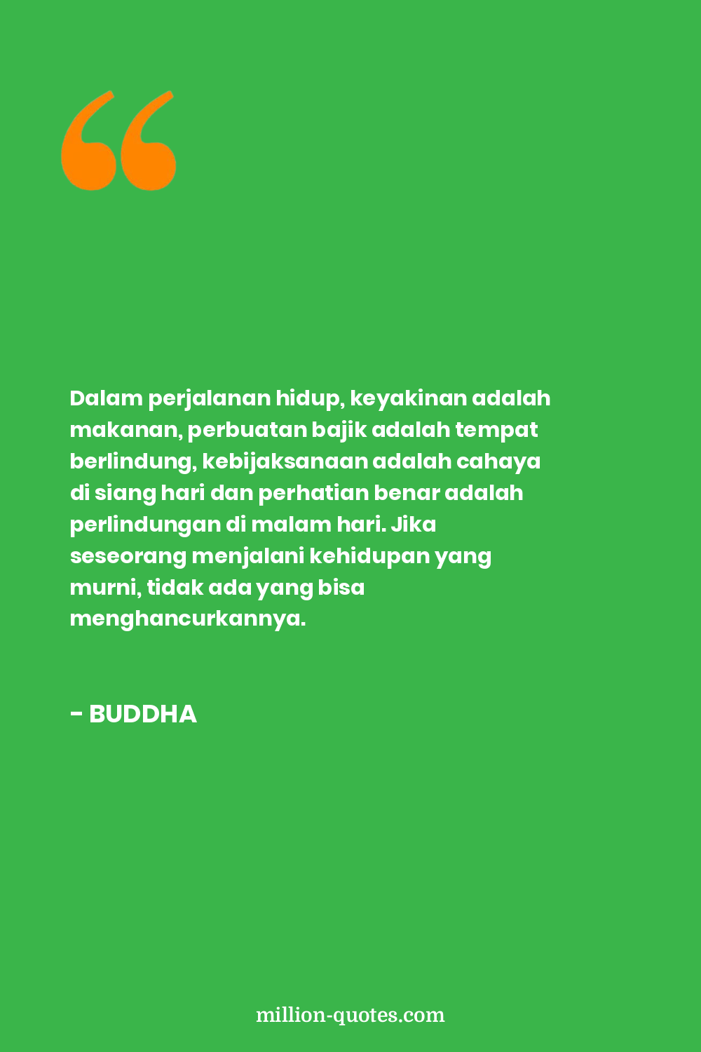 Dalam perjalanan hidup, keyakinan adalah makanan, perbuatan bajik adalah tempat berlindung, kebijaksanaan adalah cahaya di siang hari dan perhatian benar adalah perlindungan di malam hari. Jika seseorang menjalani kehidupan yang murni, tidak ada yang bisa menghancurkannya.