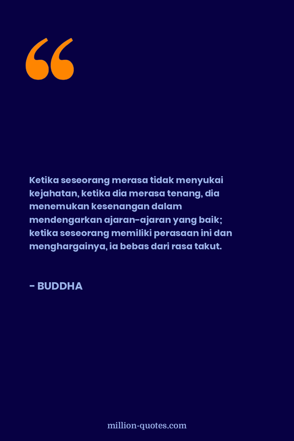 Ketika seseorang merasa tidak menyukai kejahatan, ketika dia merasa tenang, dia menemukan kesenangan dalam mendengarkan ajaran-ajaran yang baik; ketika seseorang memiliki perasaan ini dan menghargainya, ia bebas dari rasa takut.