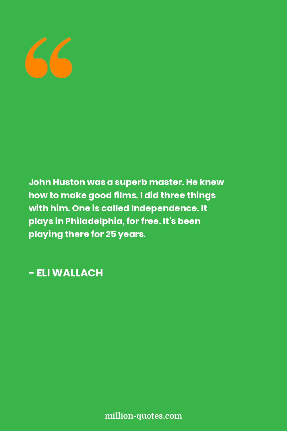 John Huston was a superb master. He knew how to make good films. I did three things with him. One is called Independence. It plays in Philadelphia, for free. It's been playing there for 25 years.