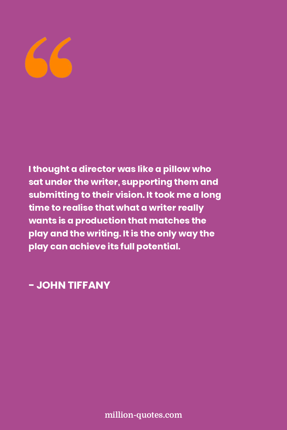 I thought a director was like a pillow who sat under the writer, supporting them and submitting to their vision. It took me a long time to realise that what a writer really wants is a production that matches the play and the writing. It is the only way the play can achieve its full potential.