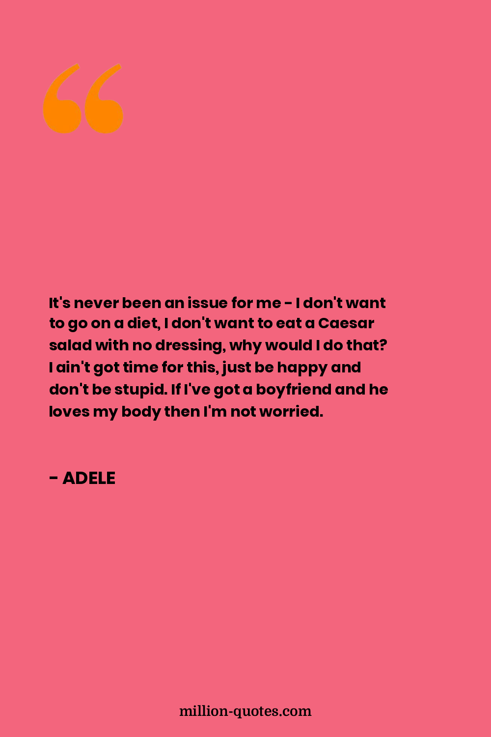 It's never been an issue for me - I don't want to go on a diet, I don't want to eat a Caesar salad with no dressing, why would I do that? I ain't got time for this, just be happy and don't be stupid. If I've got a boyfriend and he loves my body then I'm not worried.