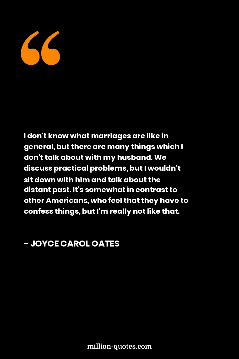 I don't know what marriages are like in general, but there are many things which I don't talk about with my husband. We discuss practical problems, but I wouldn't sit down with him and talk about the distant past. It's somewhat in contrast to other Americans, who feel that they have to confess things, but I'm really not like that.