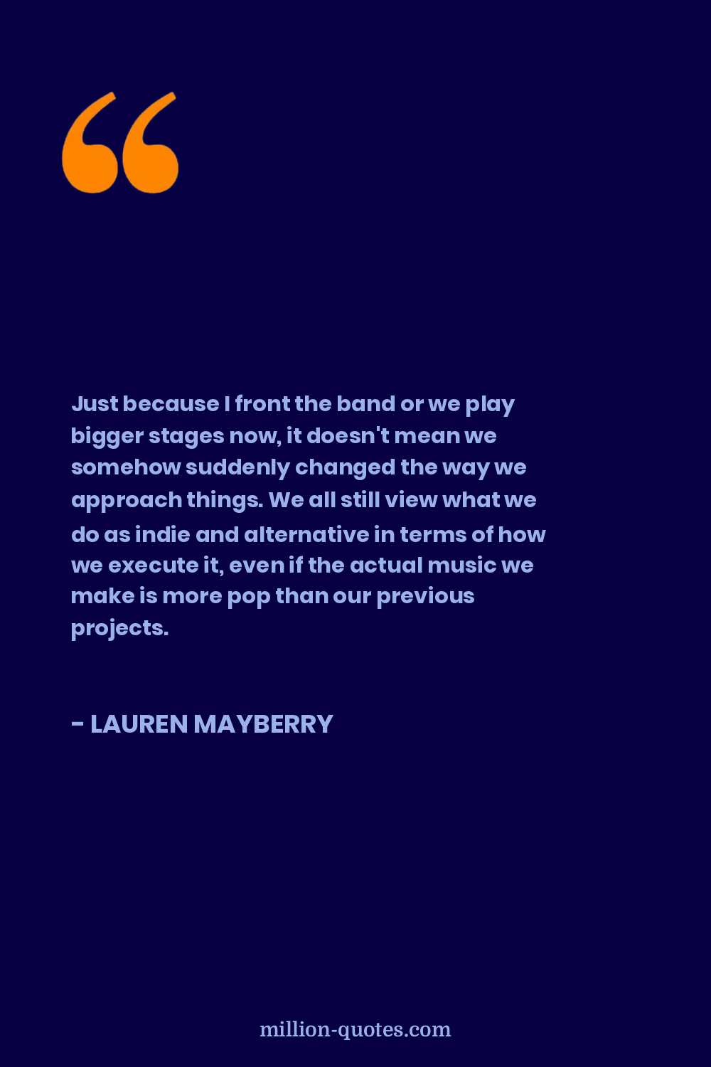 Just because I front the band or we play bigger stages now, it doesn't mean we somehow suddenly changed the way we approach things. We all still view what we do as indie and alternative in terms of how we execute it, even if the actual music we make is more pop than our previous projects.