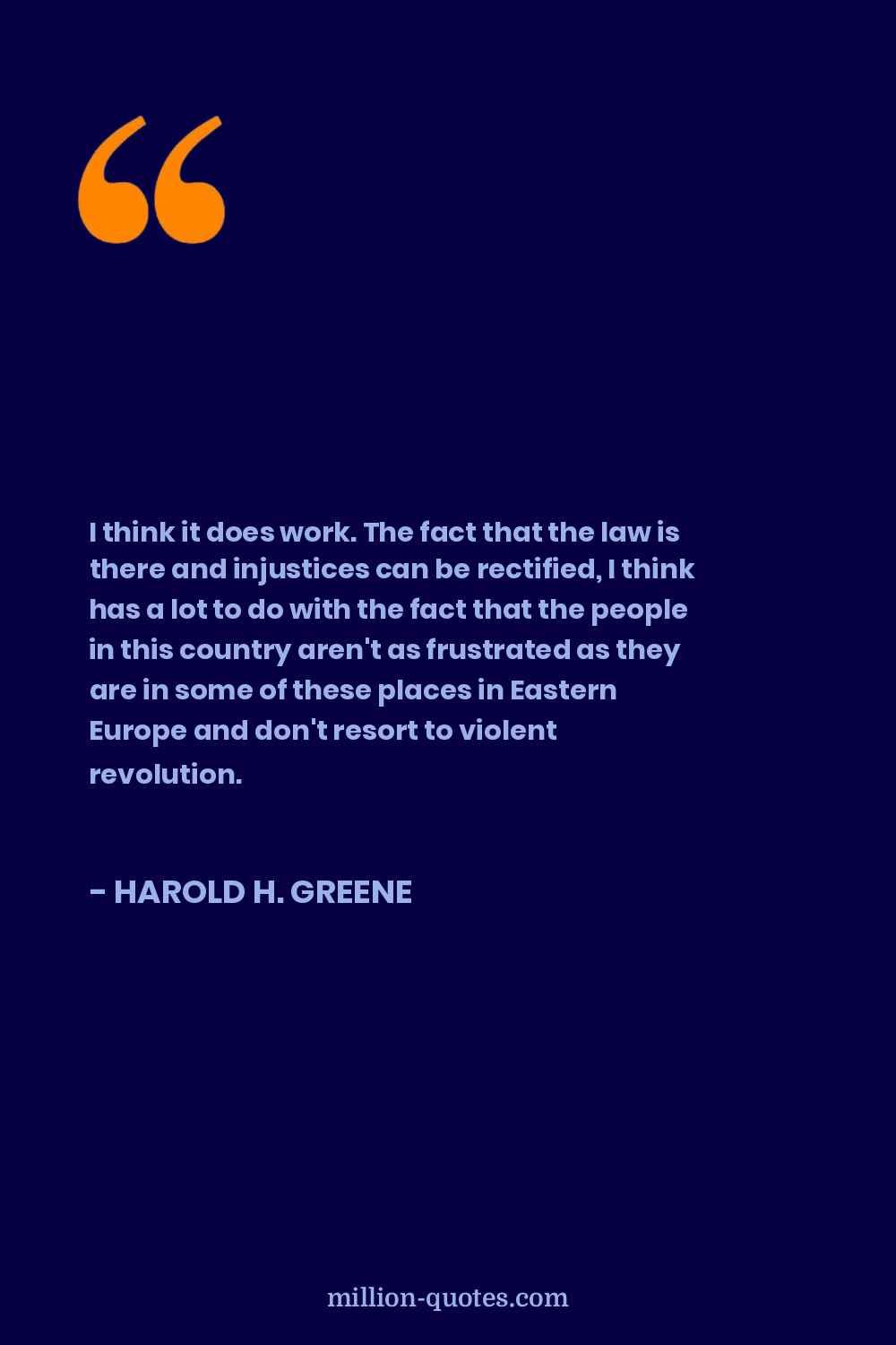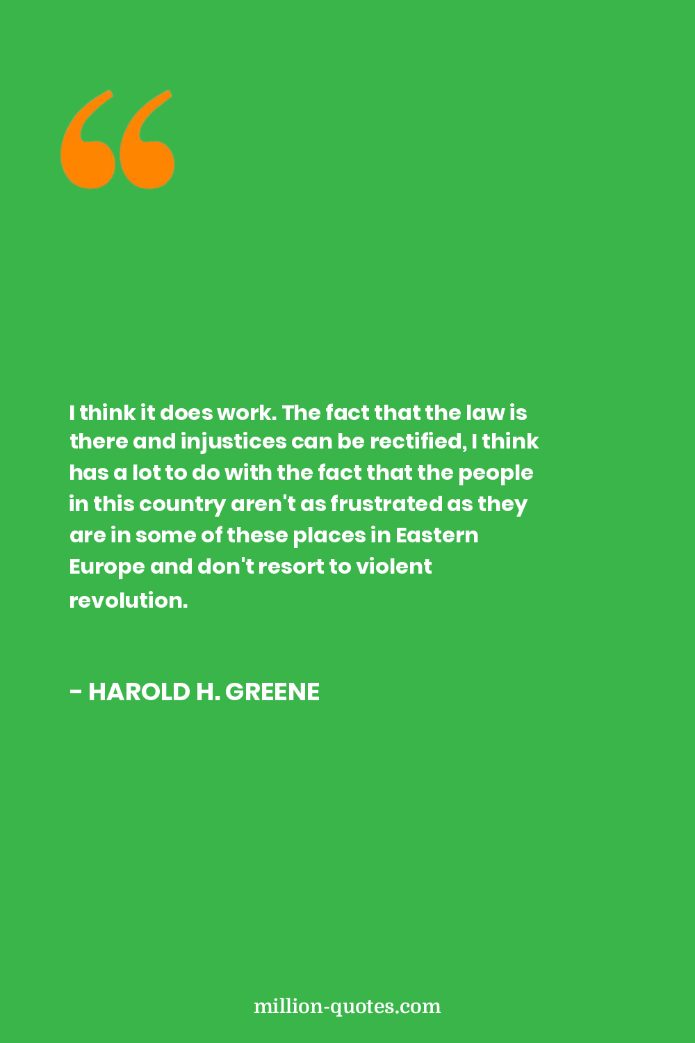I think it does work. The fact that the law is there and injustices can be rectified, I think has a lot to do with the fact that the people in this country aren't as frustrated as they are in some of these places in Eastern Europe and don't resort to violent revolution.