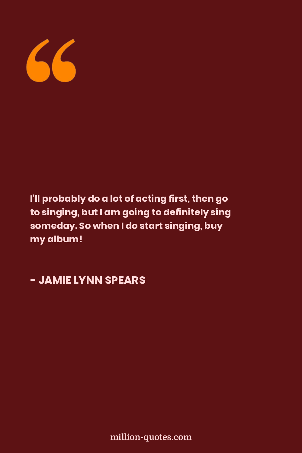I'll probably do a lot of acting first, then go to singing, but I am going to definitely sing someday. So when I do start singing, buy my album!