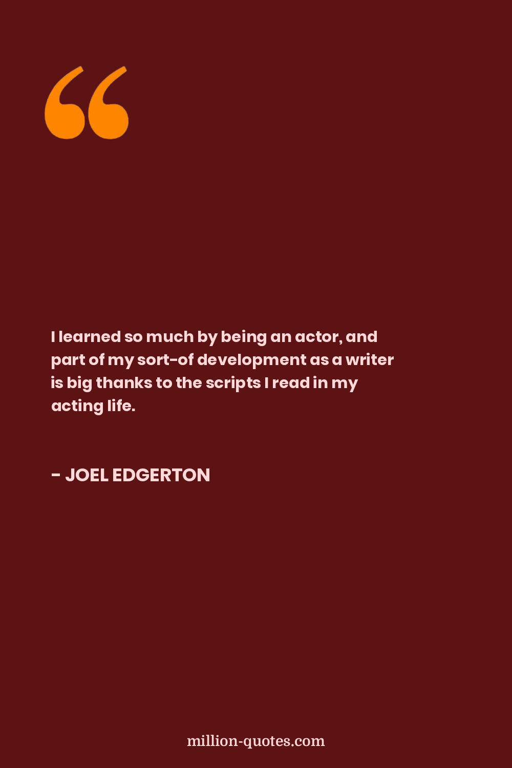 I learned so much by being an actor, and part of my sort-of development as a writer is big thanks to the scripts I read in my acting life.