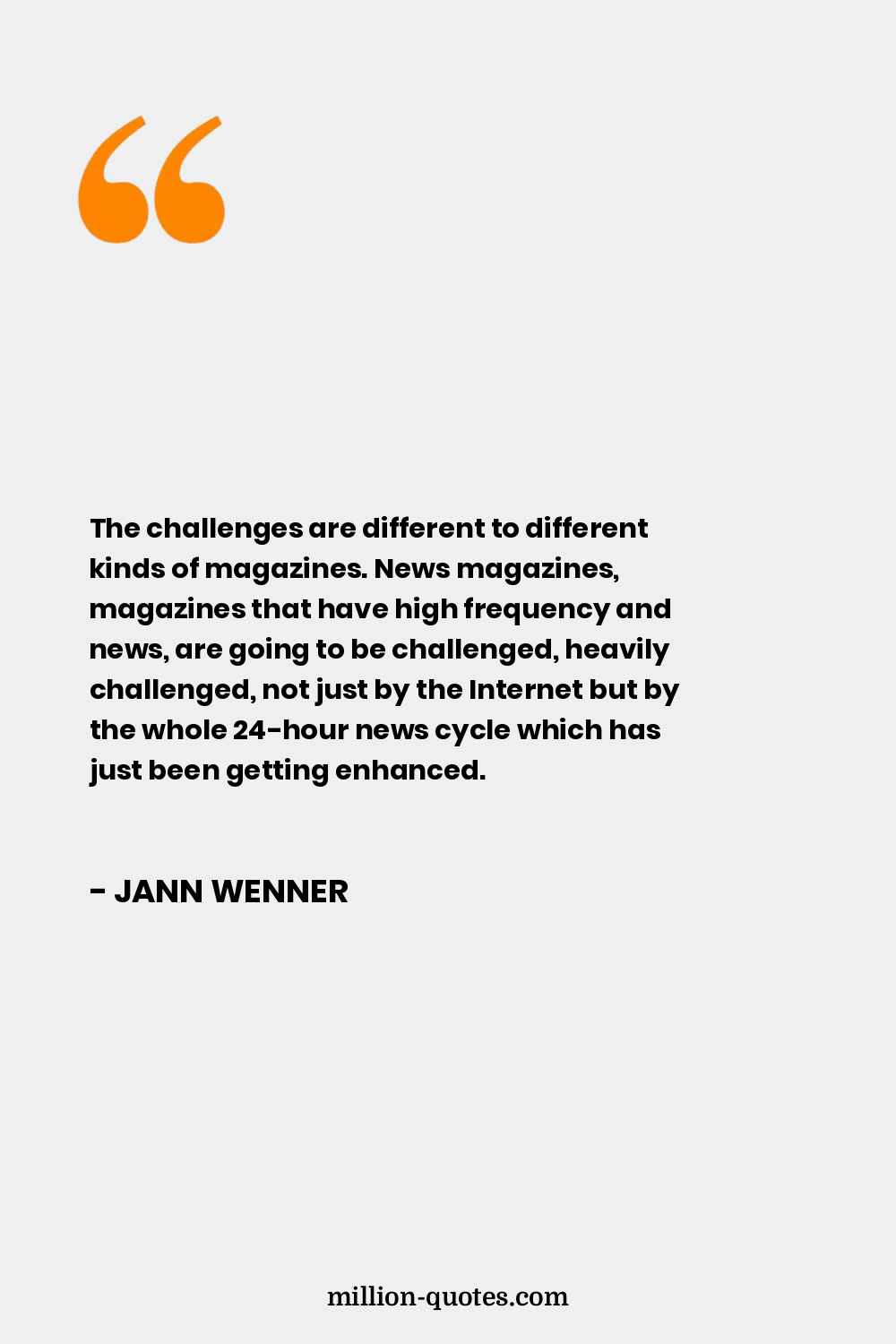 The challenges are different to different kinds of magazines. News magazines, magazines that have high frequency and news, are going to be challenged, heavily challenged, not just by the Internet but by the whole 24-hour news cycle which has just been getting enhanced.