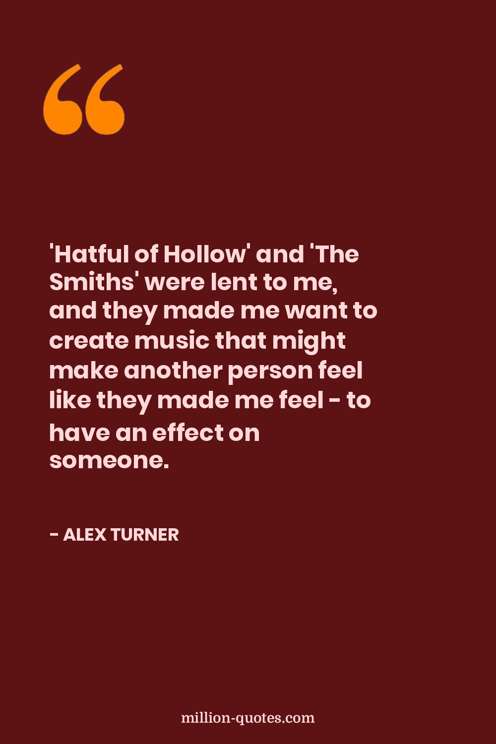 'Hatful of Hollow' and 'The Smiths' were lent to me, and they made me want to create music that might make another person feel like they made me feel - to have an effect on someone.