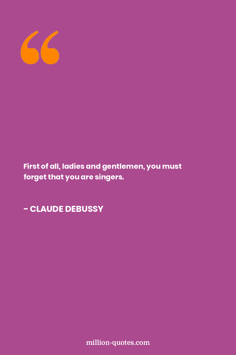 First of all, ladies and gentlemen, you must forget that you are singers.